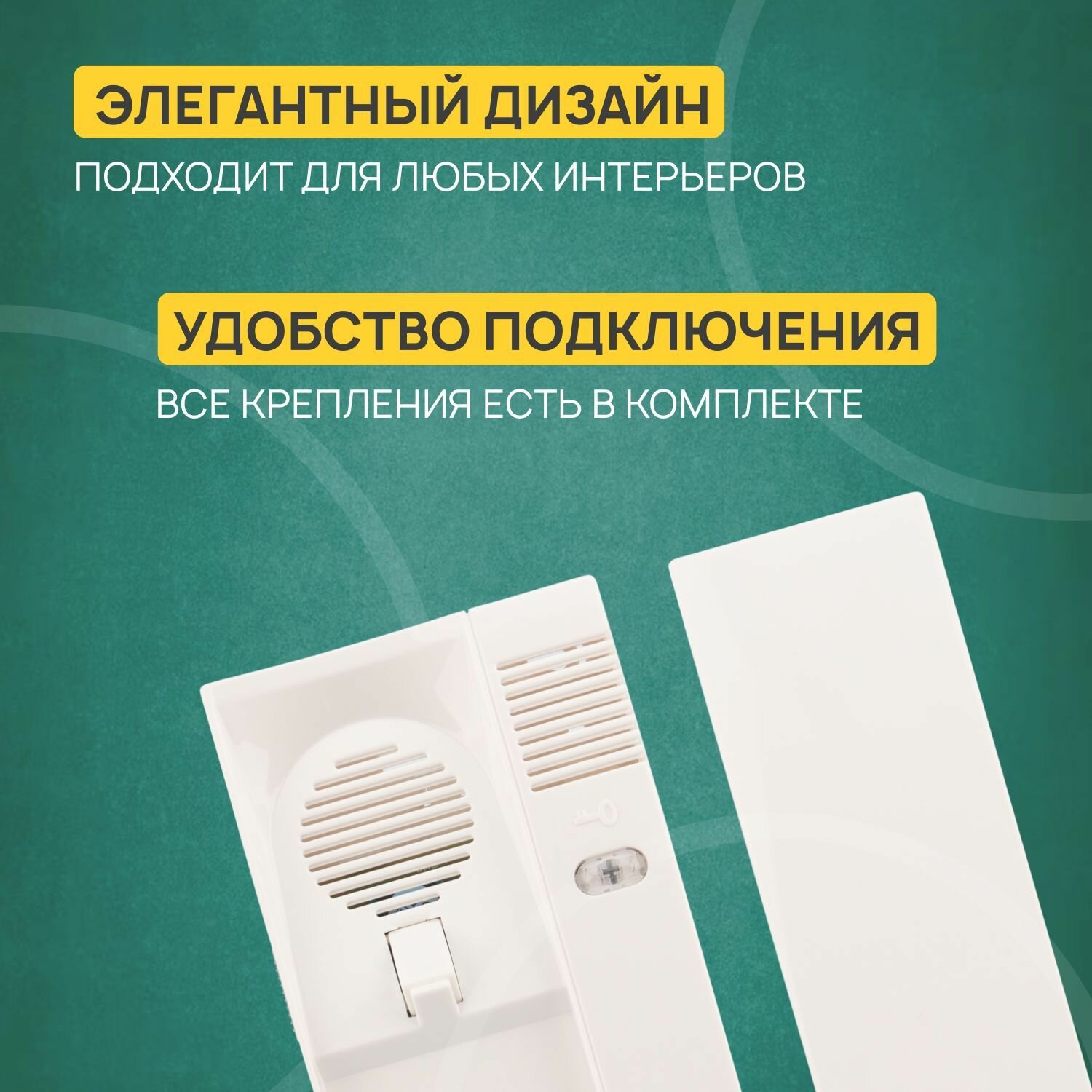 | Плюсы: | Домофон, выглядит стильно. Белый глянцевый цвет. Громкость достаточная. Горит светодиодный индикатор во время вызова. |