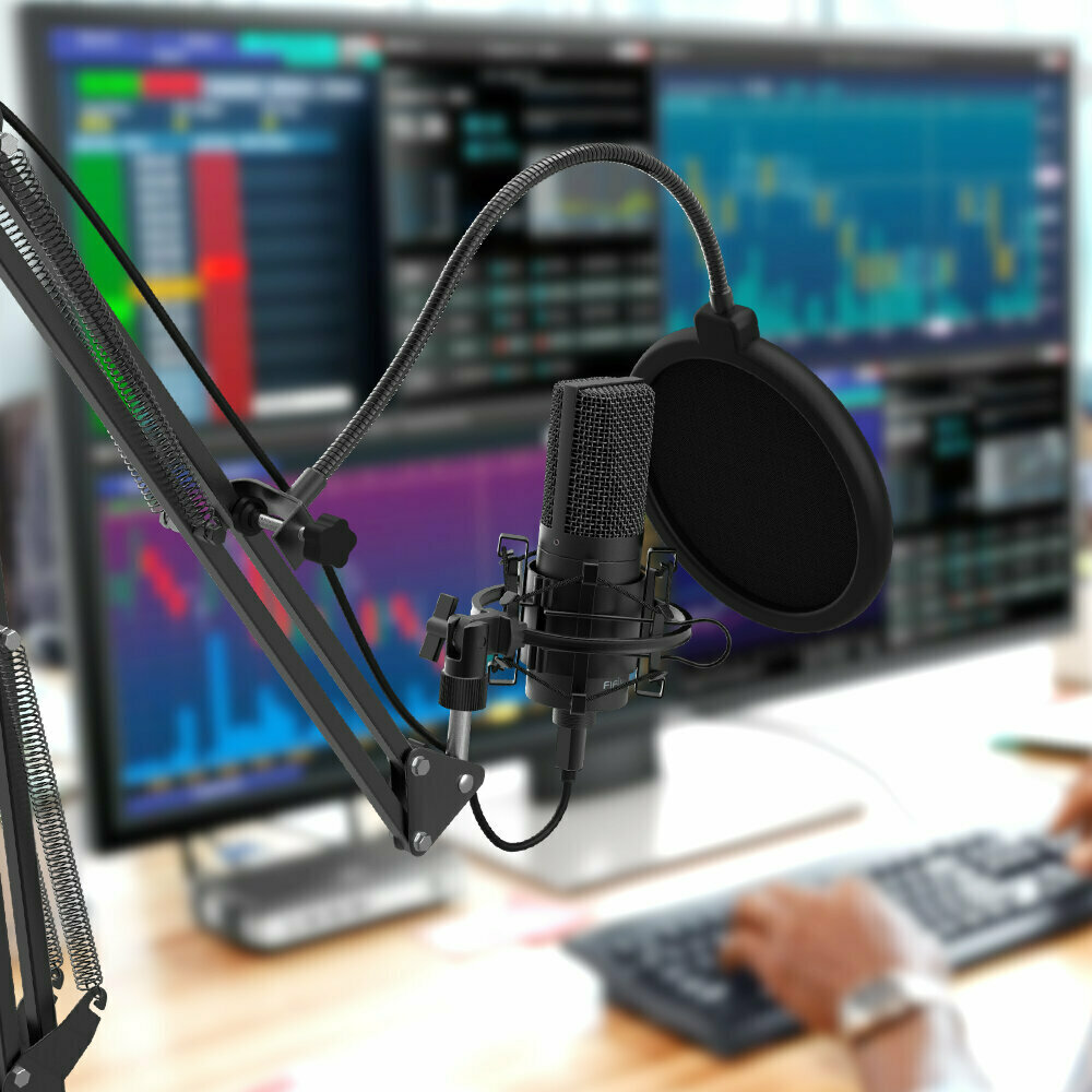 Конденсаторный USB микрофон FIFINE T669 (Регулируемая стойка, антивибрационное крепление (паук), поп-фильтр)