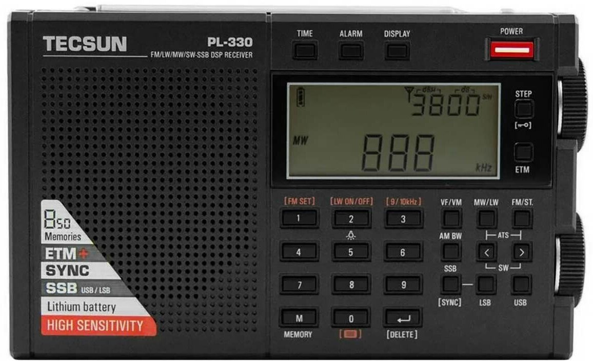 Радиоприемник Tecsun PL-330 портативный цифровой всеволновой, мульти диапазон FM/AM/SW/MW/LW ЖК-дисплей таймер сна, будильник. Аккумулятор 1000mAh