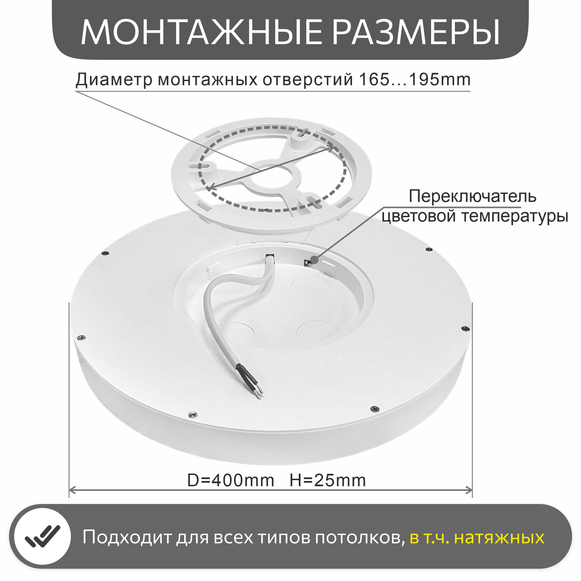 | Плюсы: | Удобный в установке, тонкий, отличное освещение и выбор из 3 цветовых температур |