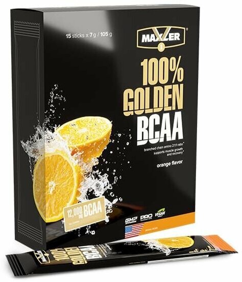 Аминокислоты Maxler 100% Golden BCAA - Апельсин, 210г - БЦАА в соотношении 2:1:1 - В форме порошка - 30 порций