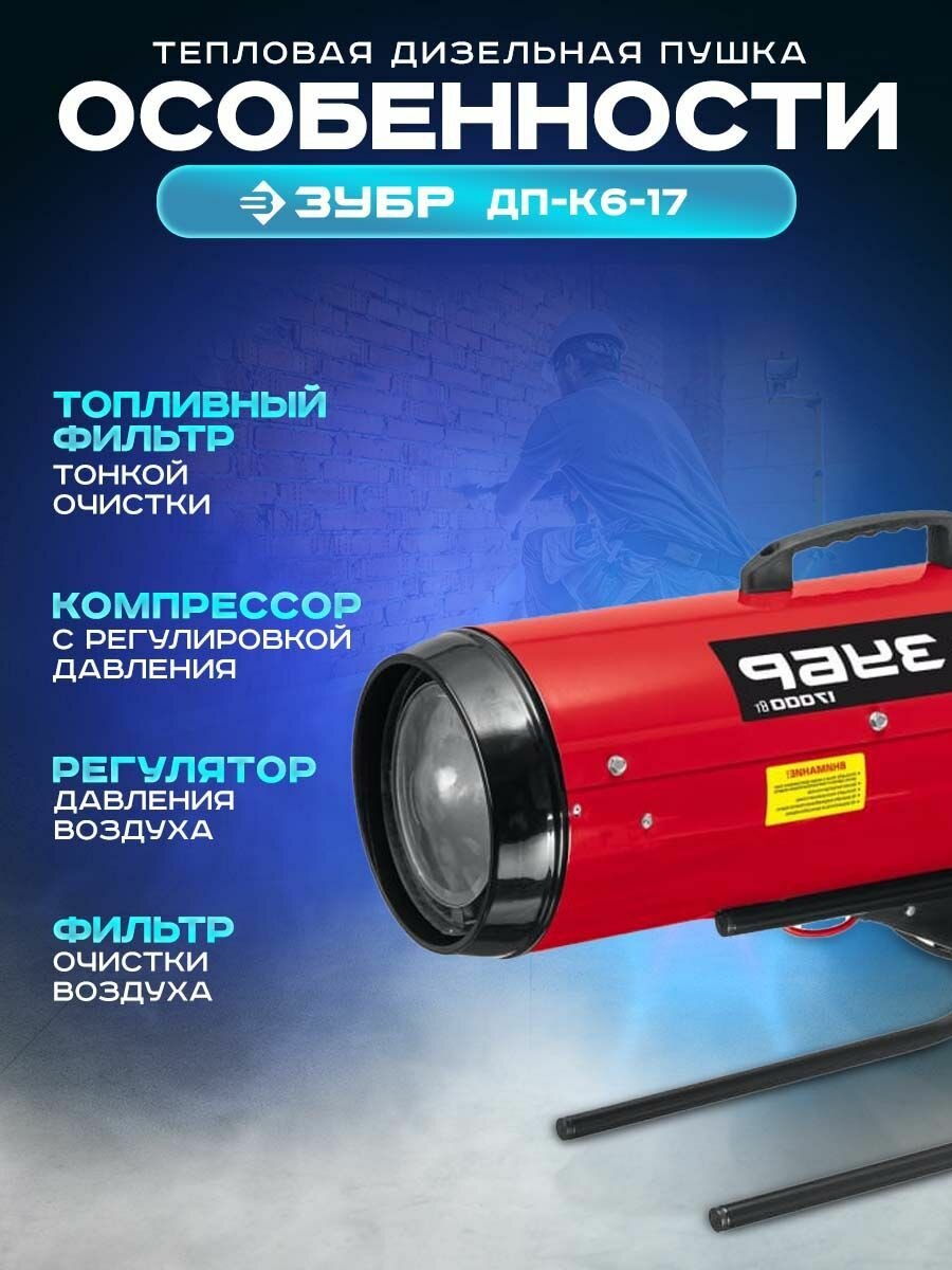 Дизельная тепловая пушка ЗУБР ДП-К6-17, 17 кВт прямого нагрева