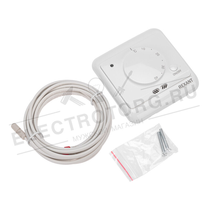 Терморегулятор механический с датчиком температуры пола и воздуха (R72XT) (белый) REXANT (1/1/64)