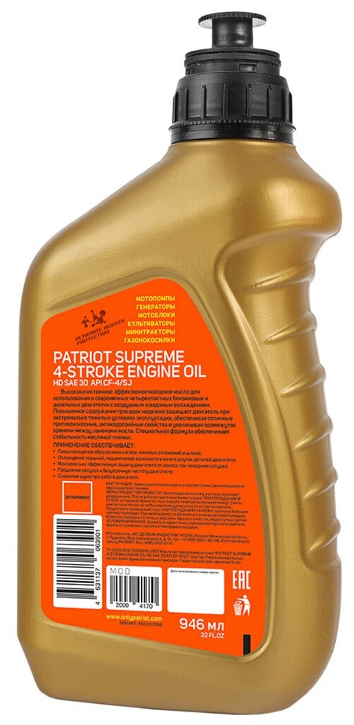Масло Масло Patriot Supreme HD Sae 30 4Т 946ml 850030598