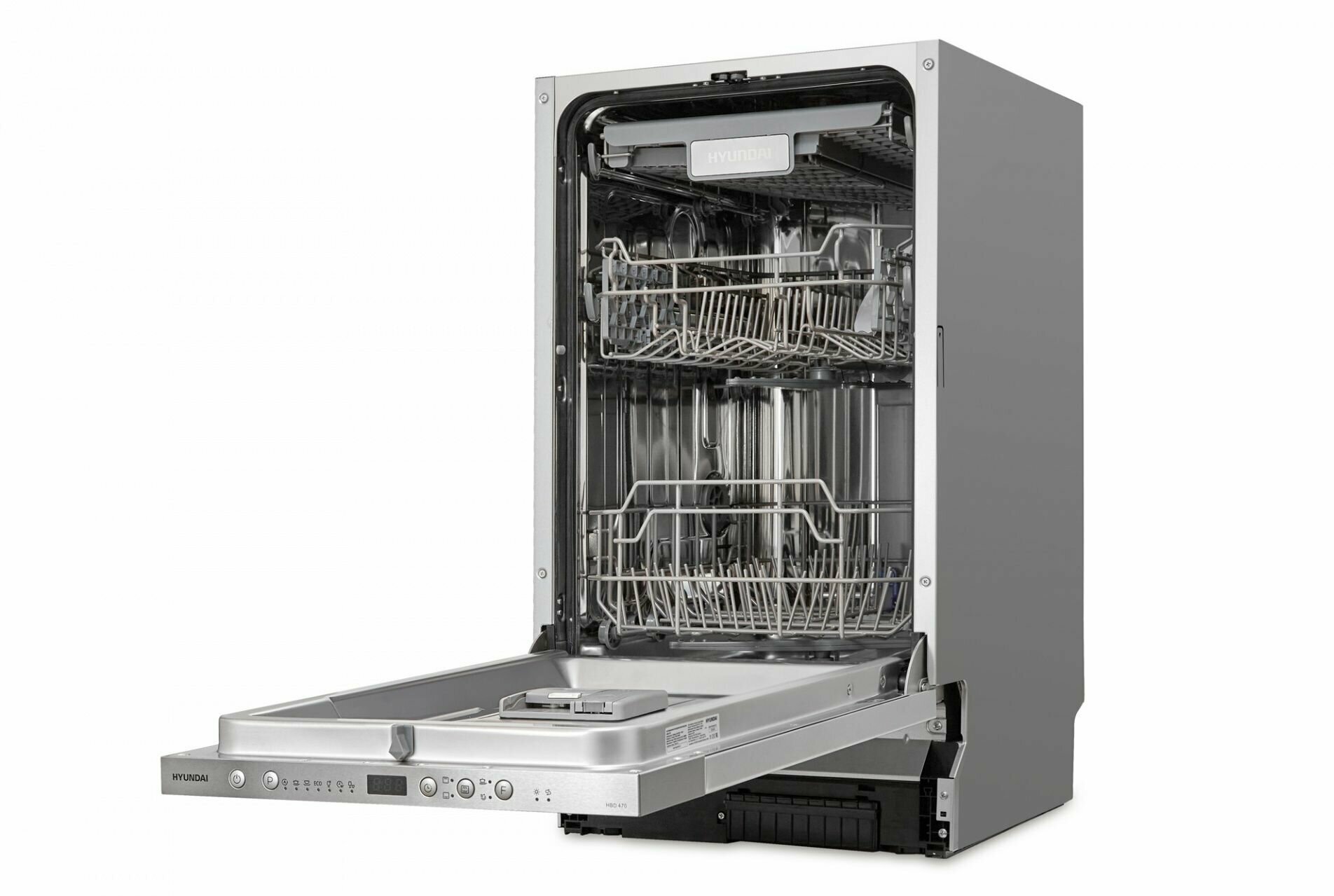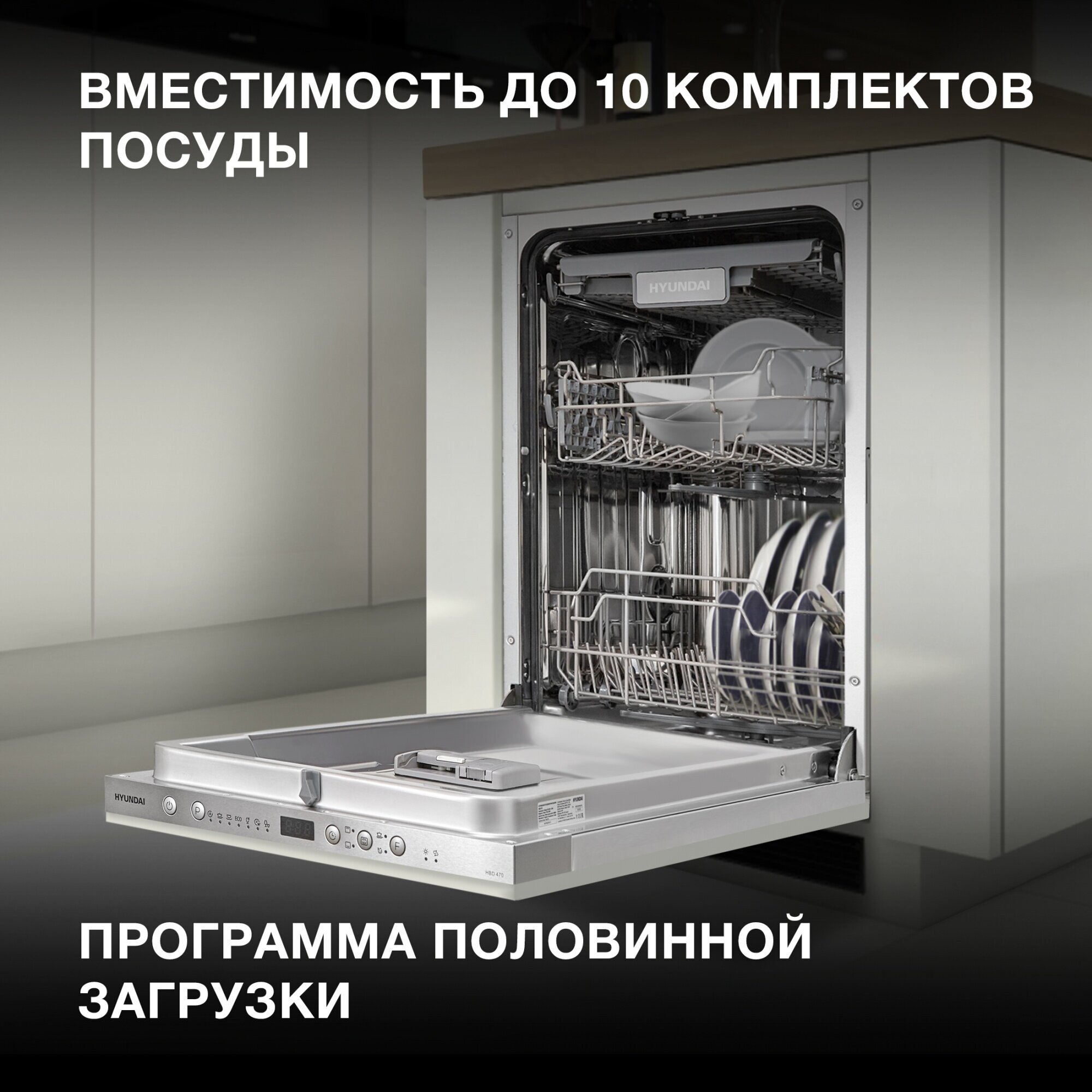 Встраиваемая посудомоечная машина Hyundai HBD 470, узкая, ширина 44.8см, полновстраиваемая, загрузка 10 комплектов