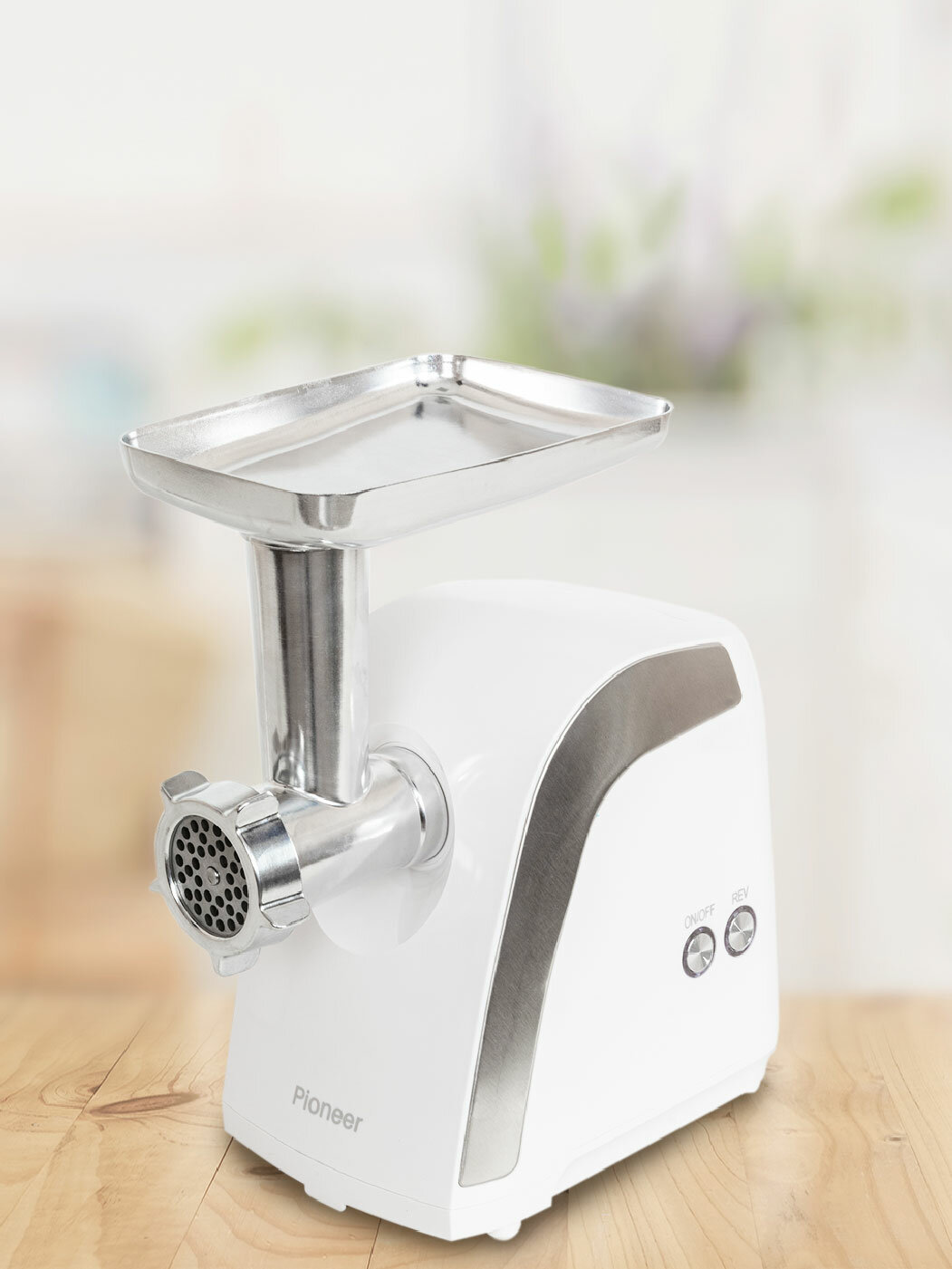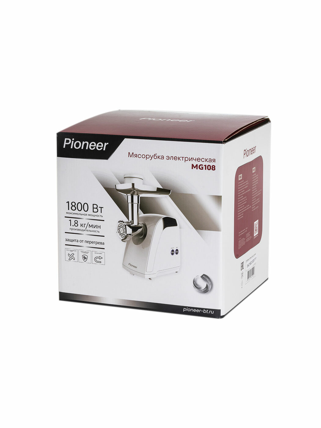 Мясорубка Pioneer MG108 электрическая с подсветкой кнопок, реверсом, насадками для колбасок и кеббе, 1800 Вт