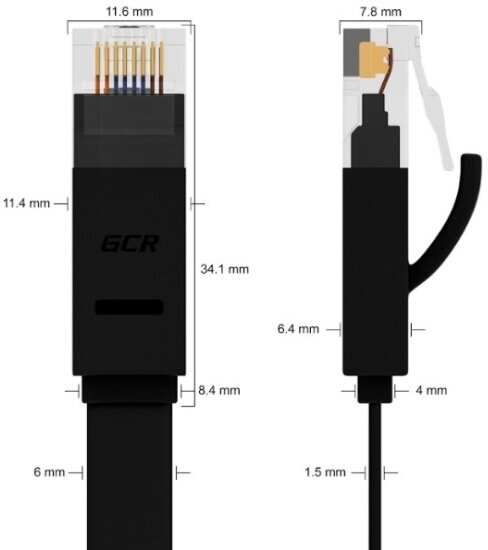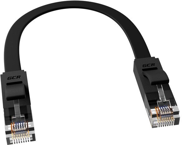 Патч-корд GCR PROF плоский UTP cat.6 10 Гбит/с RJ45 LAN контакты 24K GOLD (GCR-LNC62) черный 1.0м