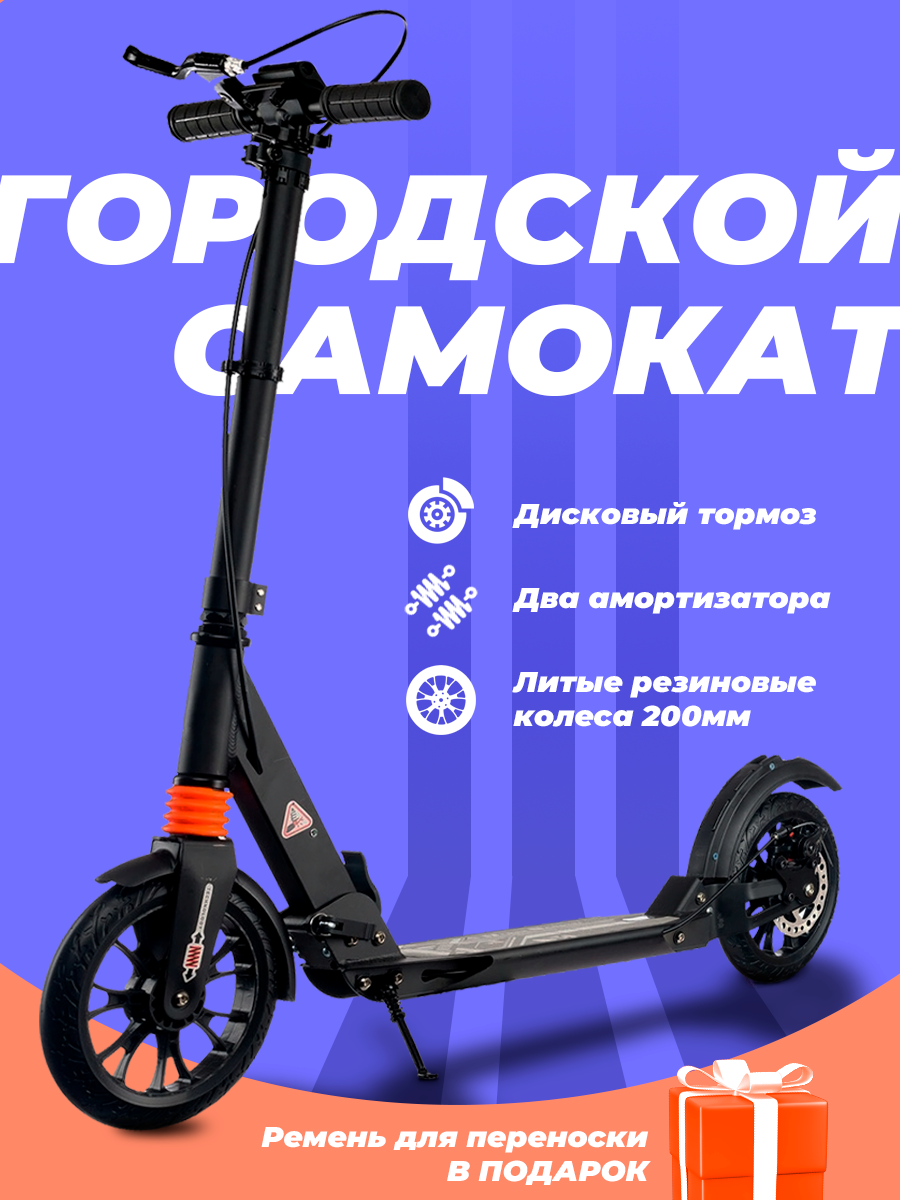Городской самокат Urban Scooter Disk 2023 с дисковым тормозом чёрный