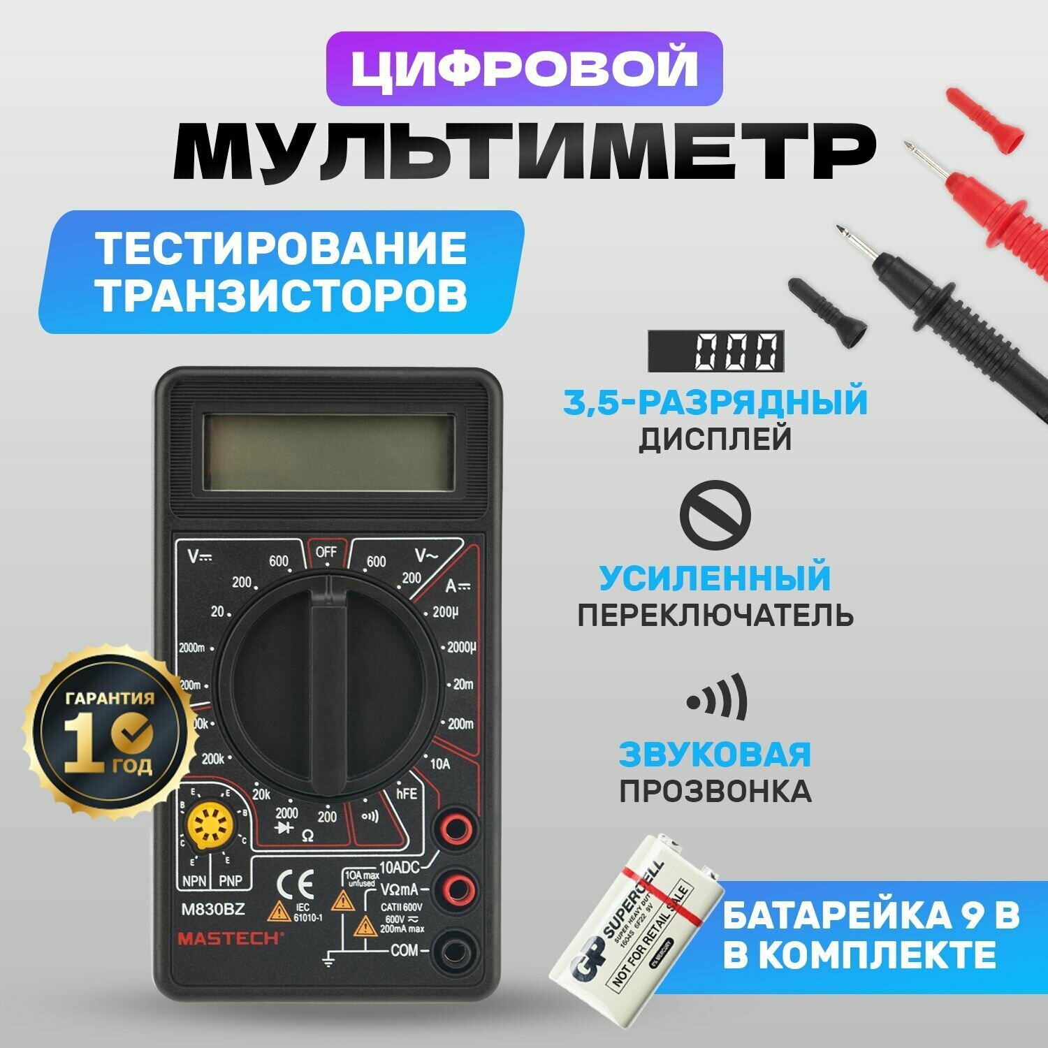 Мультиметр цифровой портативный Mastech M830BZ интересное: