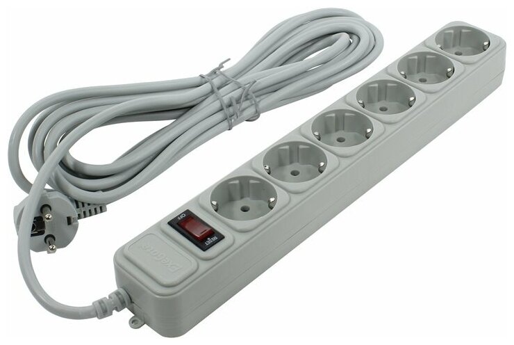 Сетевой фильтр ExeGate Sp-6-5g (6 евророзетки, 5м, выключатель, серый) .