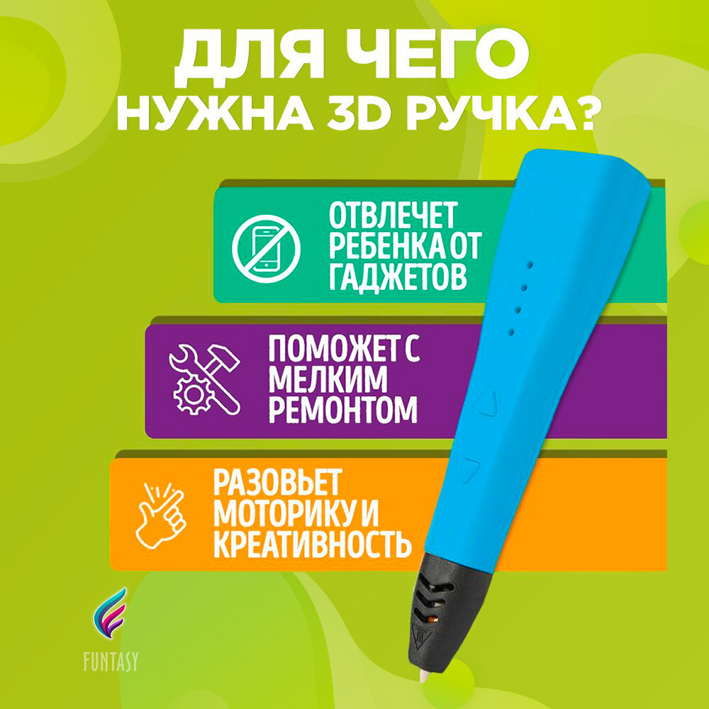 СохранитьНабор для 3Д творчества 4в1 Funtasy 3D-ручка PICCOLO (Синий)+PLA-пластик 17 цветов+Книжка с трафаретами , картриджи , без запаха , безопасный , леска пластмасса интересное:
