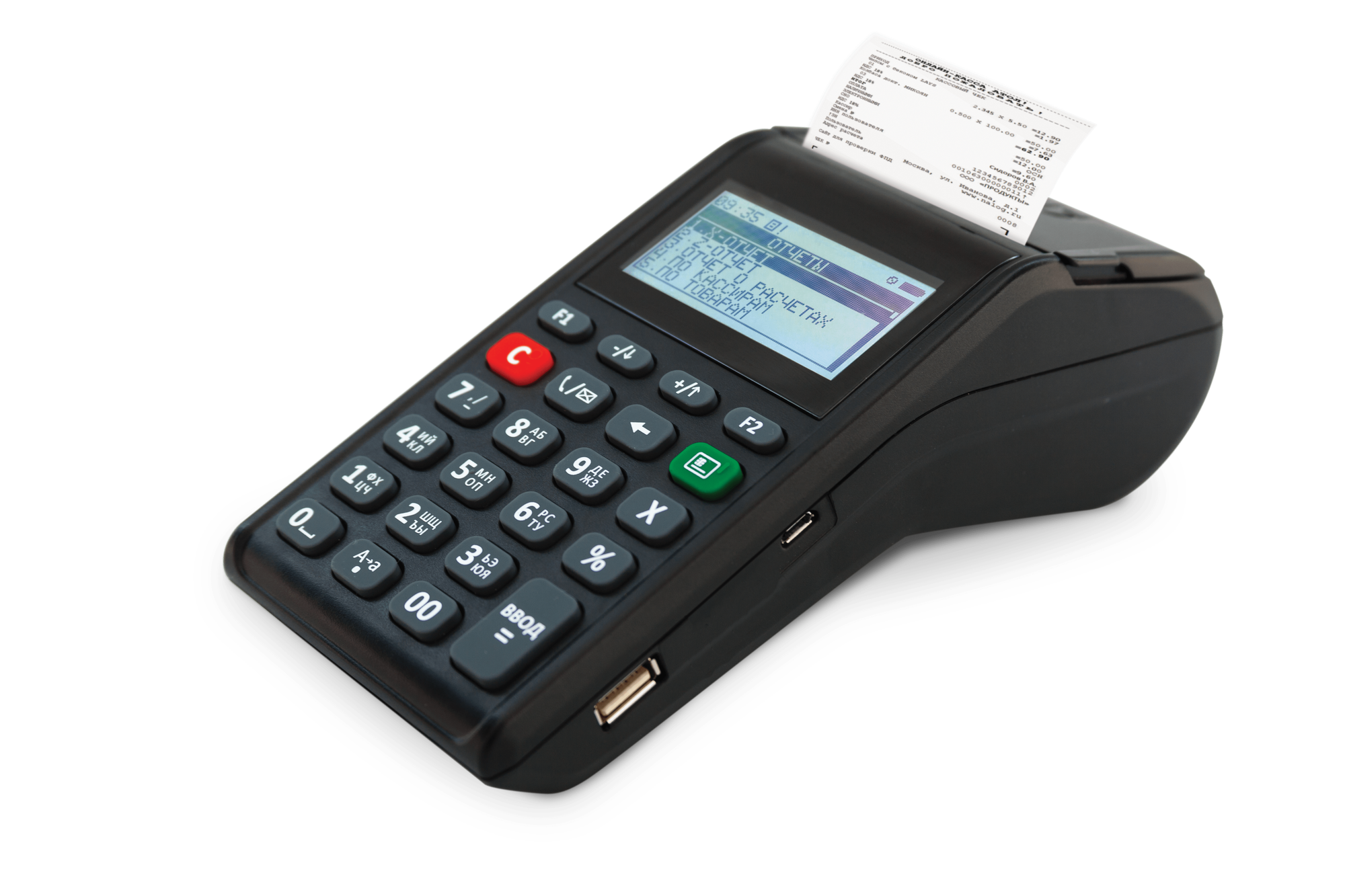 | Особенности | встроенный принтер чеков |