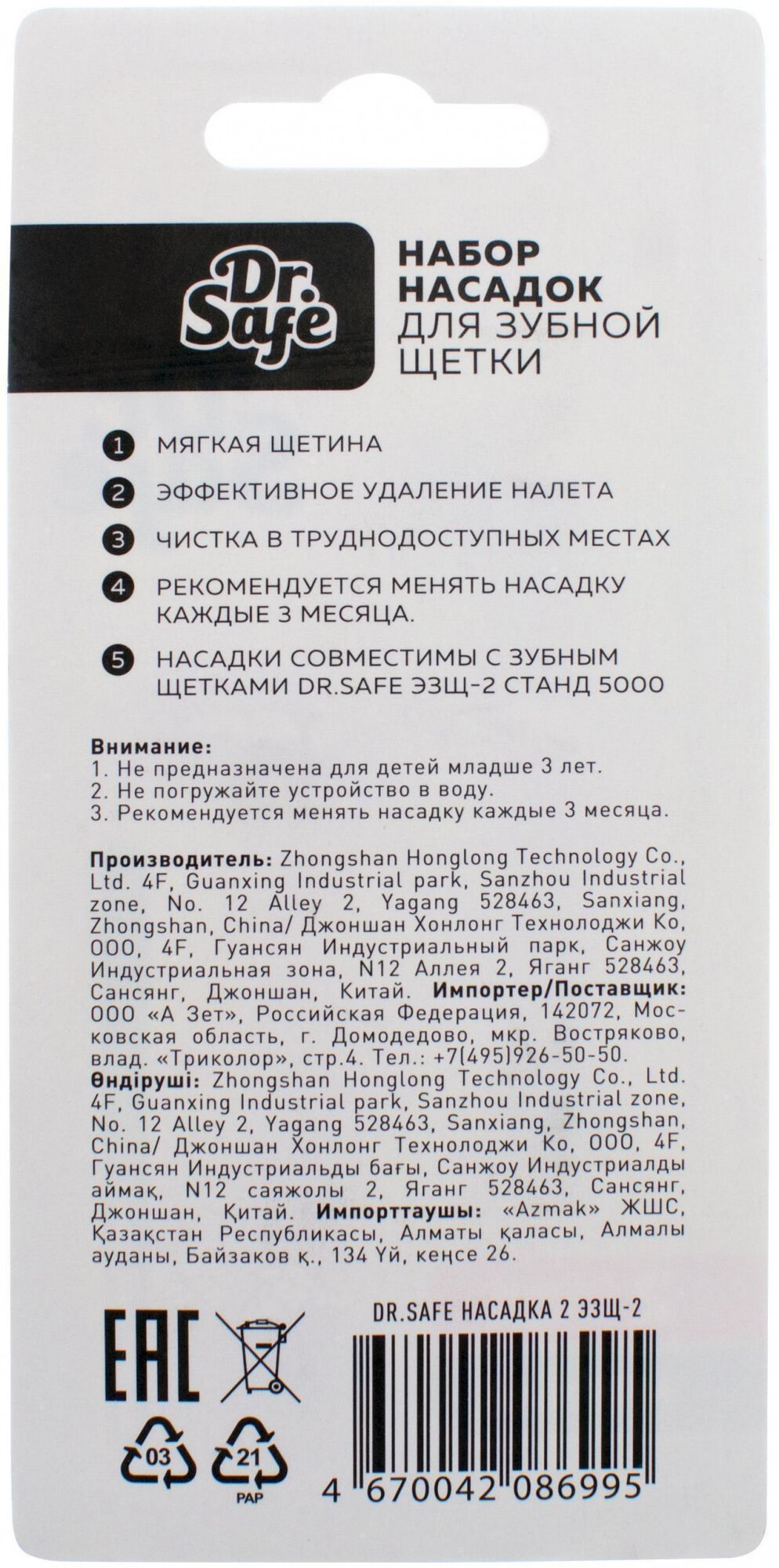Набор насадок для зубной щетки Dr.Safe ЭЗЩ-2 станд 5000, 2шт интересное: