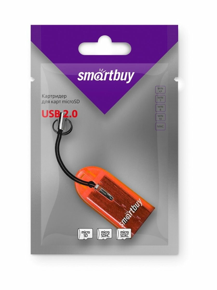 Картридер Smartbuy 710, USB 2.0 - MicroSD, оранжевый