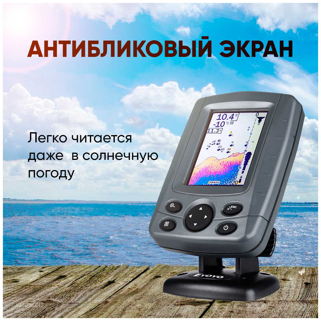 Эхолот Fish Finder 688 C для лодки проводной двухлучевой