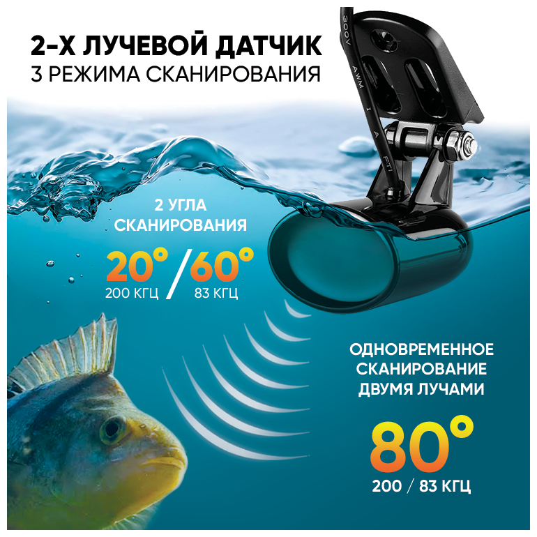 Эхолот для рыбалки с лодки Amazin FishFinder 688C 2-ух лучевой датчик и 3 режима сканирования