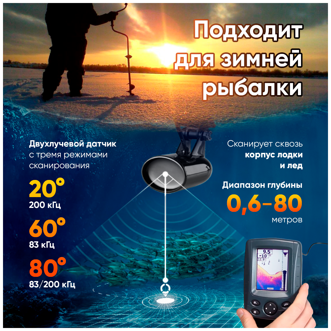 | Определение размера/глубины рыбы | есть |