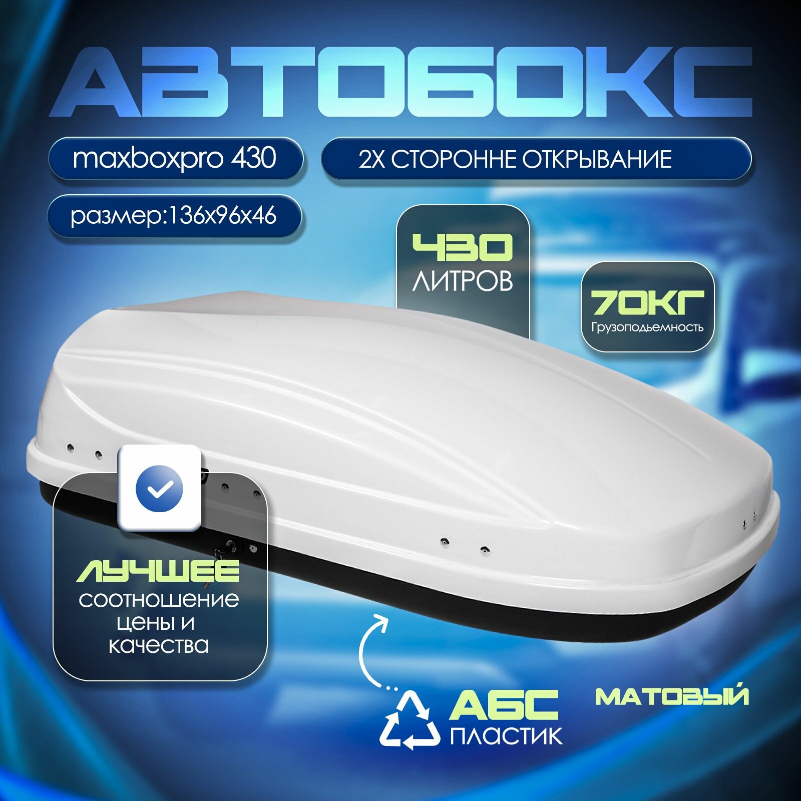 Автобокс MaxBox PRO 430 Белый глянцевый (136*96*42) Двух сторонний