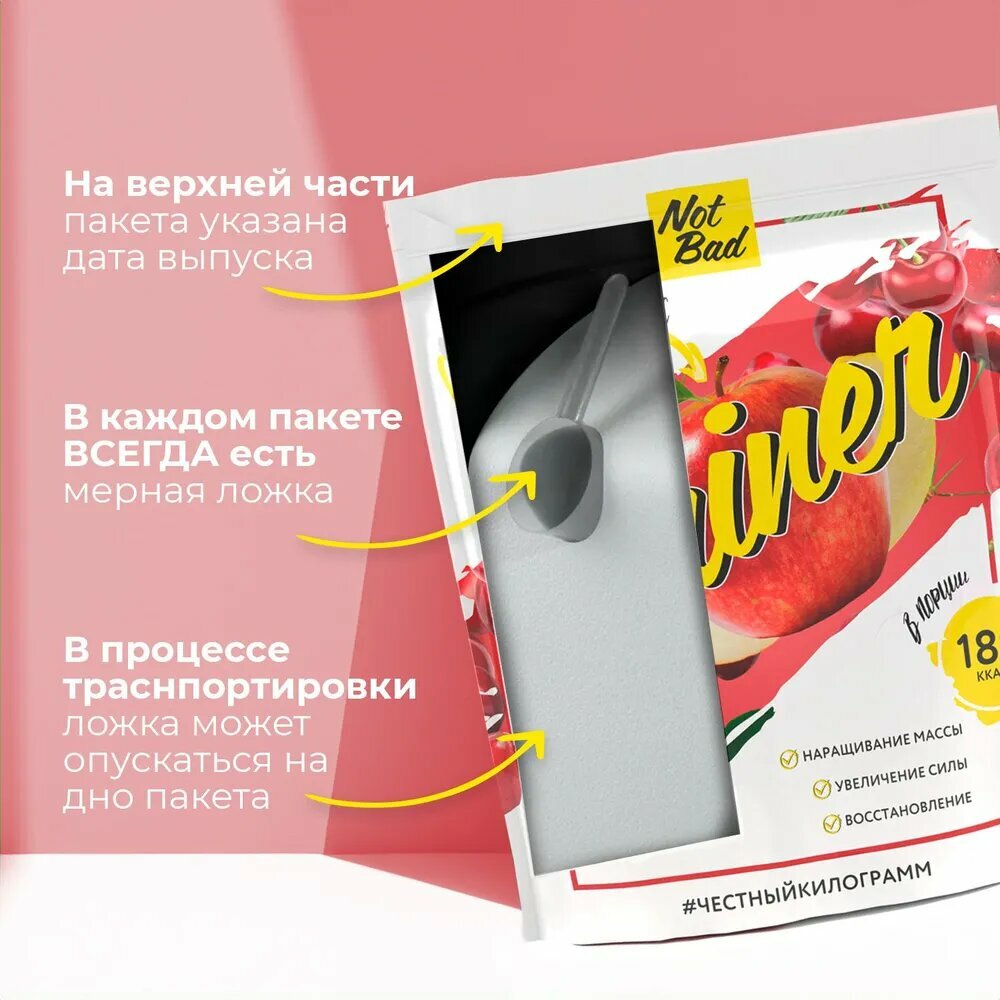 Гейнер NotBad с быстрыми углеводами, 1000 г, яблоко-вишня