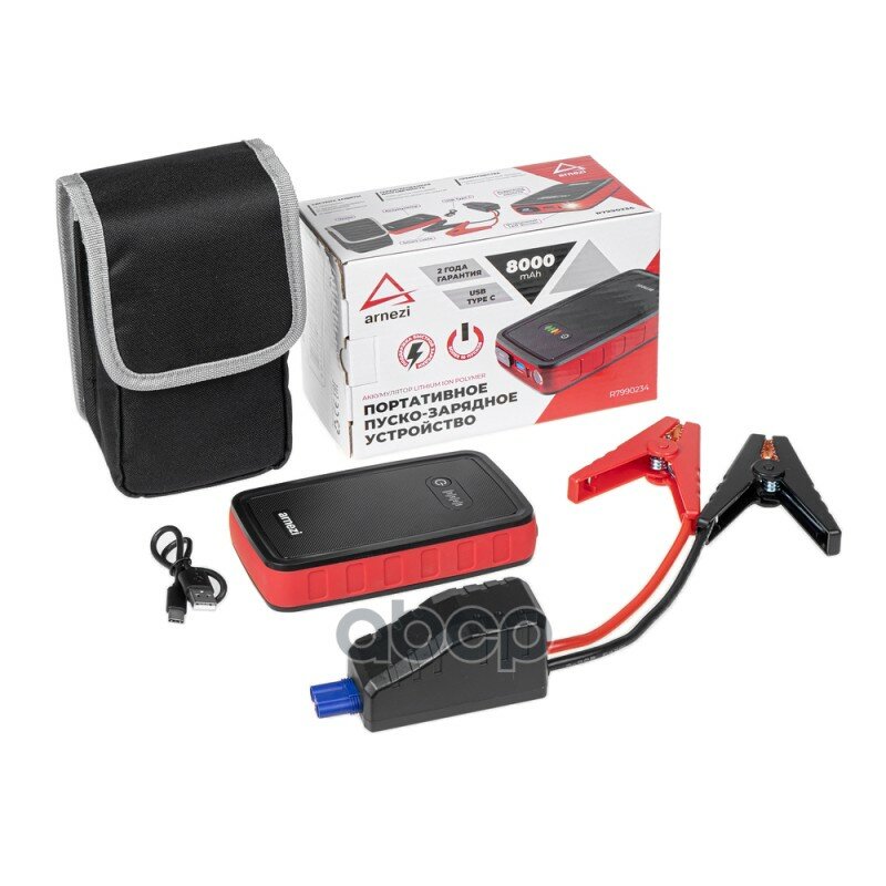 ARNEZI Портативное пусковое (зарядное) устройство PRO-8, 8000 мАч, 600А, Li-Po АКБ ARNEZI R7990234 1шт