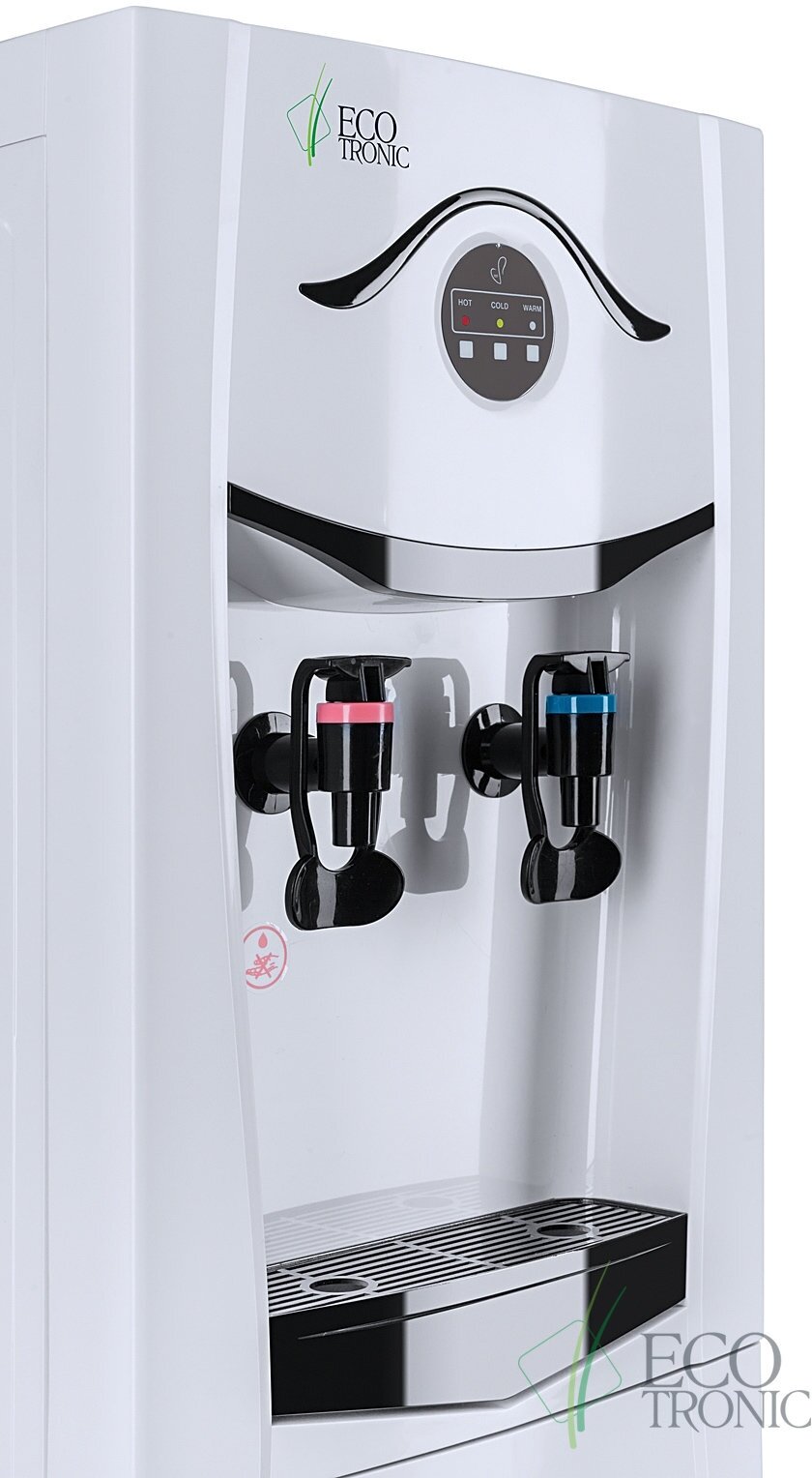 Купить Кулер для воды Ecotronic K21-LCE / Бело-черный / Напольный / Нагрев / Электронное охл / Нажатием кружкой / Шкафчик