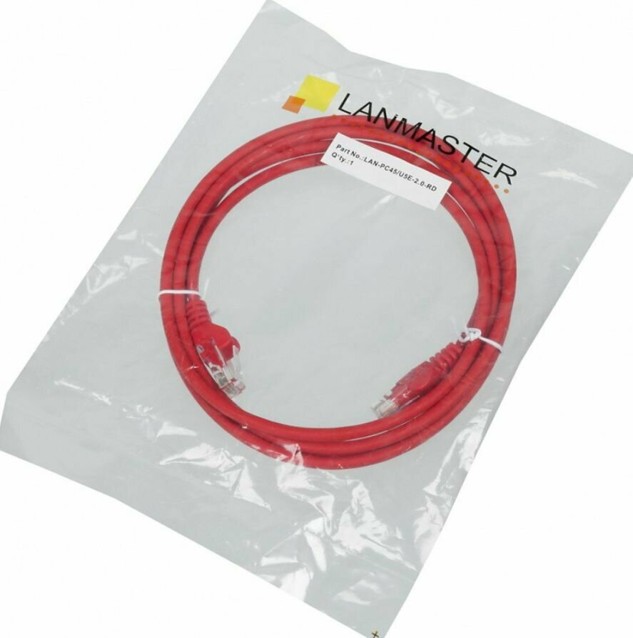 Патч-корд LanMaster вилка RJ-45, вилка RJ-45, кат.5E, LSZH, 2м, красный [lan-pc45u5e-2.0-rd]