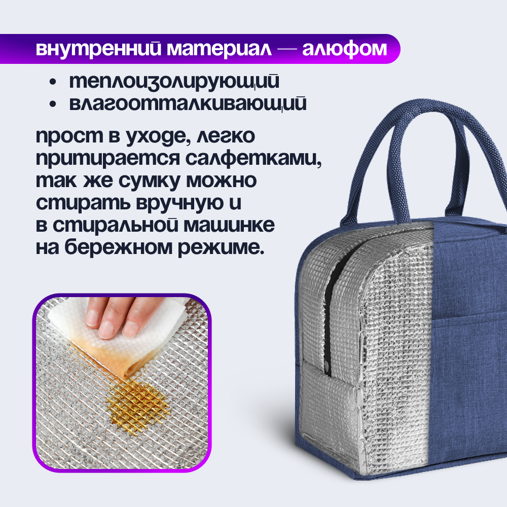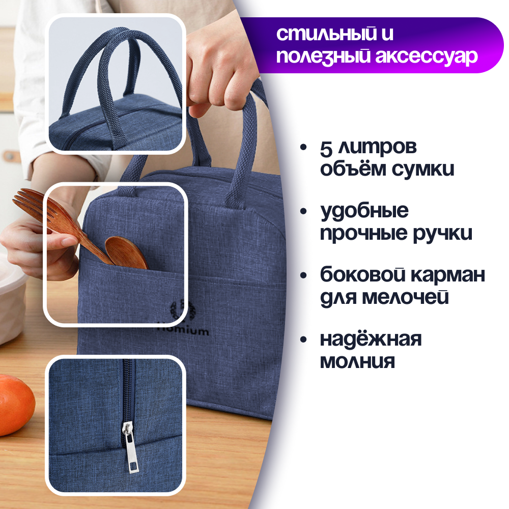 Термосумка для еды, сумка для ланча, сумка-холодильник, ZDK Homium, синяя, 23*13*19 интересное: