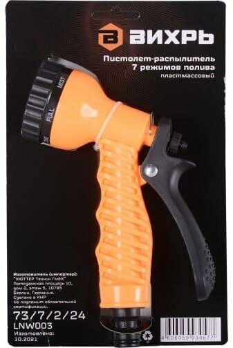 Пистолет для полива ВИХРЬ 73/7/2/24 оранжевый/черный 1 шт.