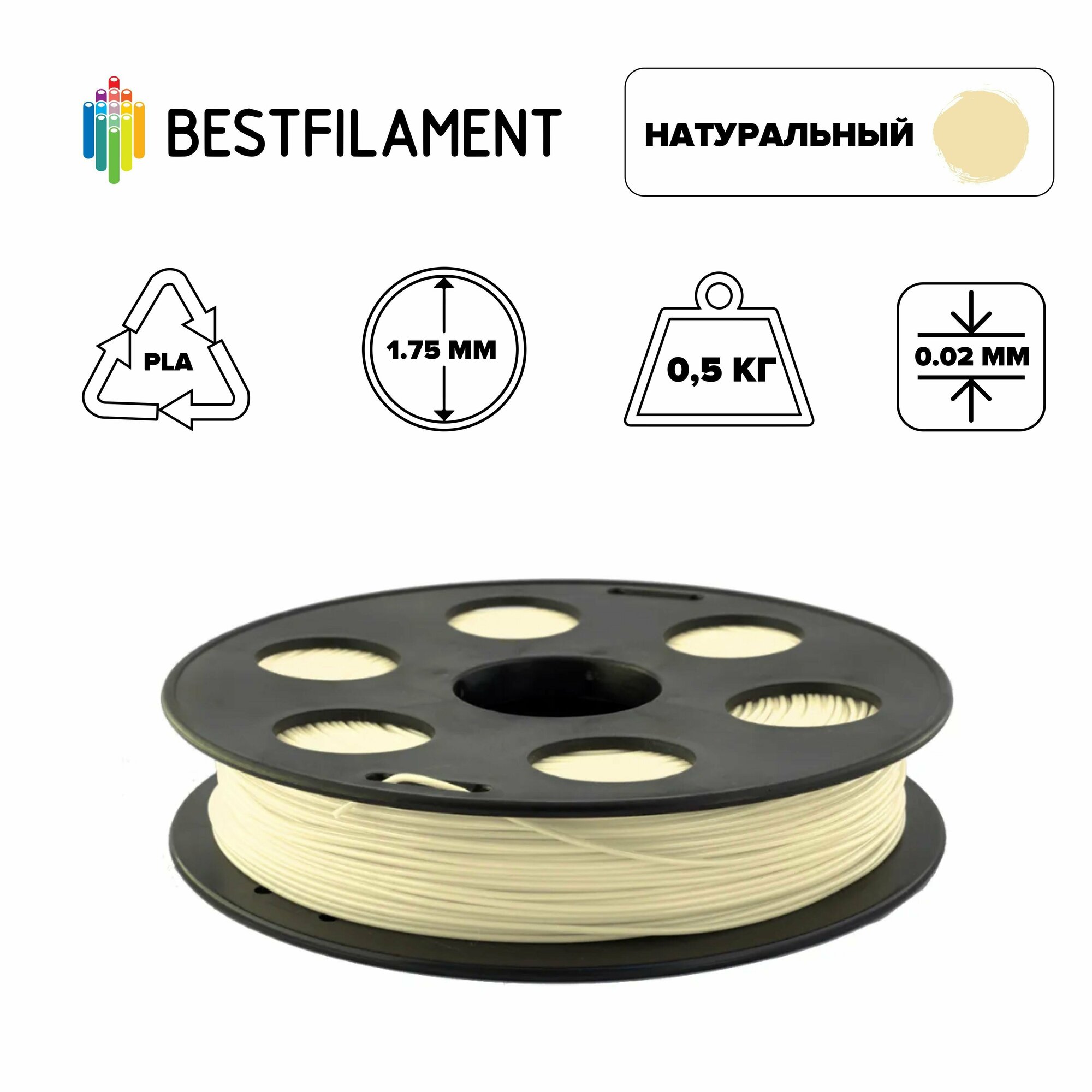 Натуральный PLA пластик Bestfilament для 3D-принтеров 0,5 кг (1,75 мм)