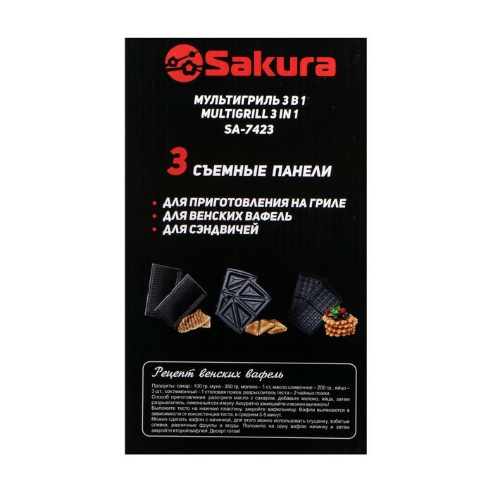 Мультипекарь Sakura SA-7423, 800 Вт, 3 сменные панели, серебристо-чёрный интересное: