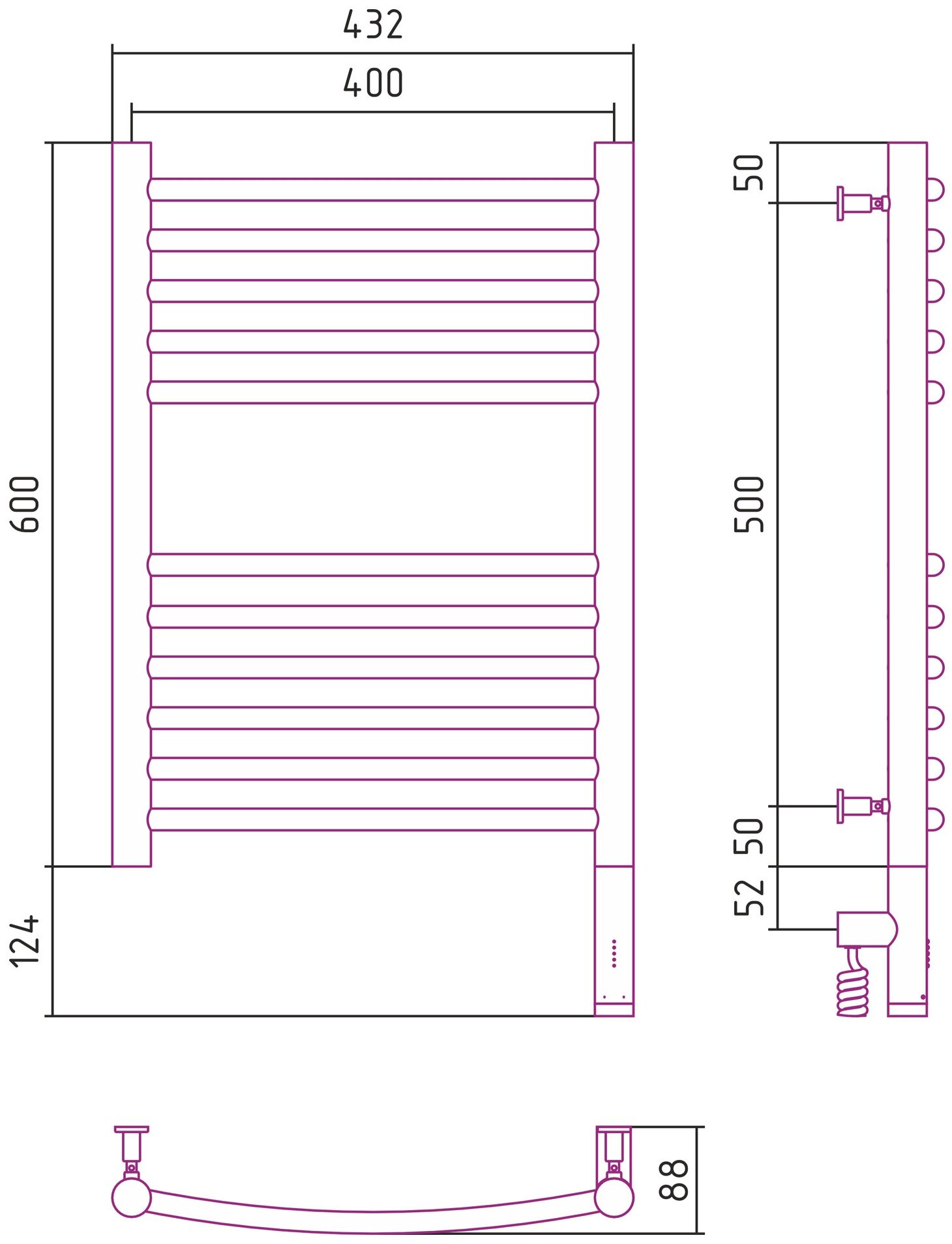 Полотенцесушитель электрический Сунержа Богема 3.0 выгнутая 600х400