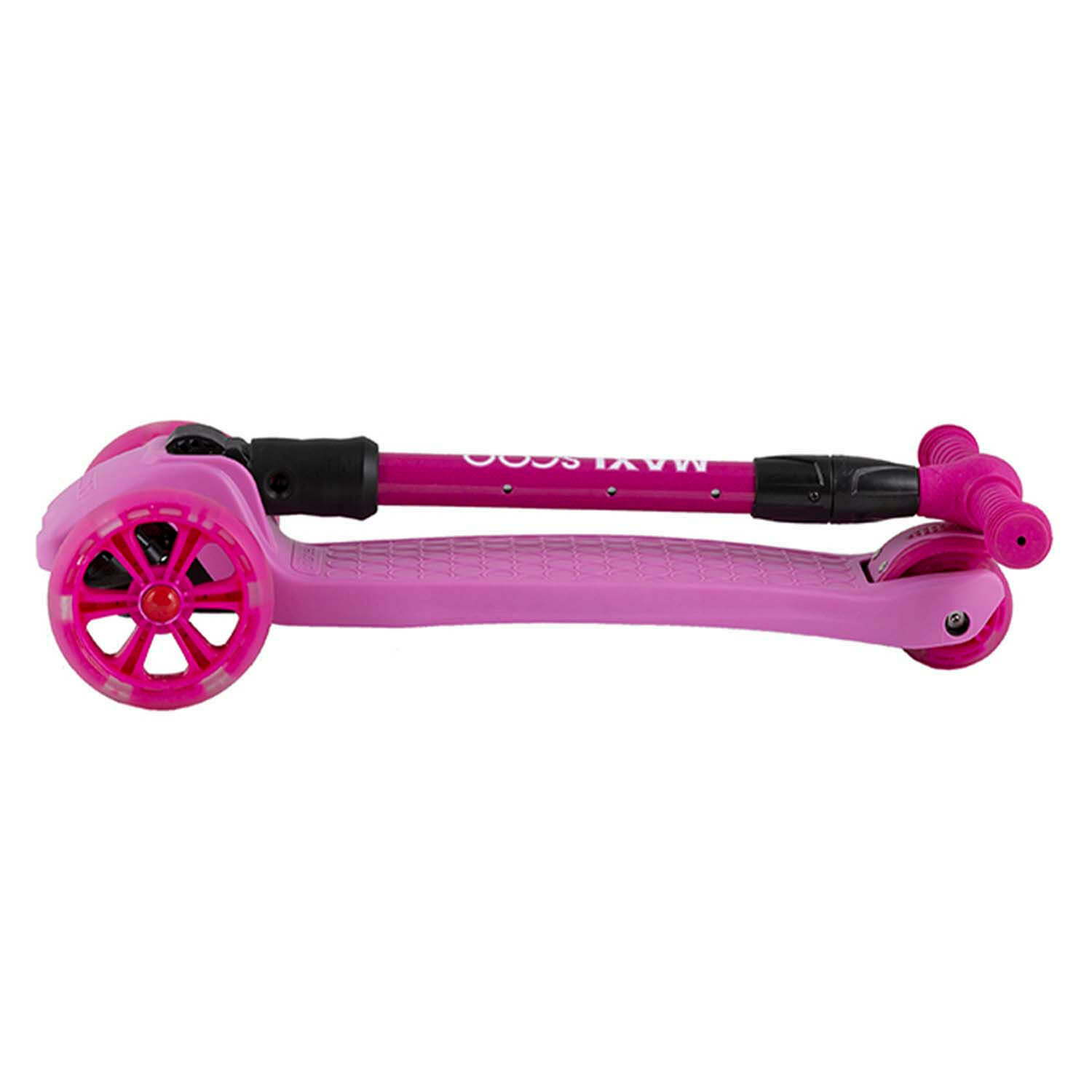 Maxiscoo Самокат Трехколесный Складной, со Светящимися Колесами, Черный с Розовым - MSC-J072001D
