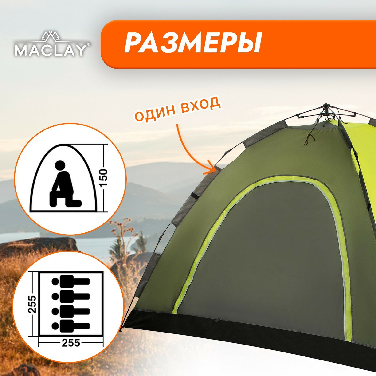 Палатка-автомат туристическая SWIFT 4, размер 255 х 255 х 150 см, 4-местная Maclay 5311053 .