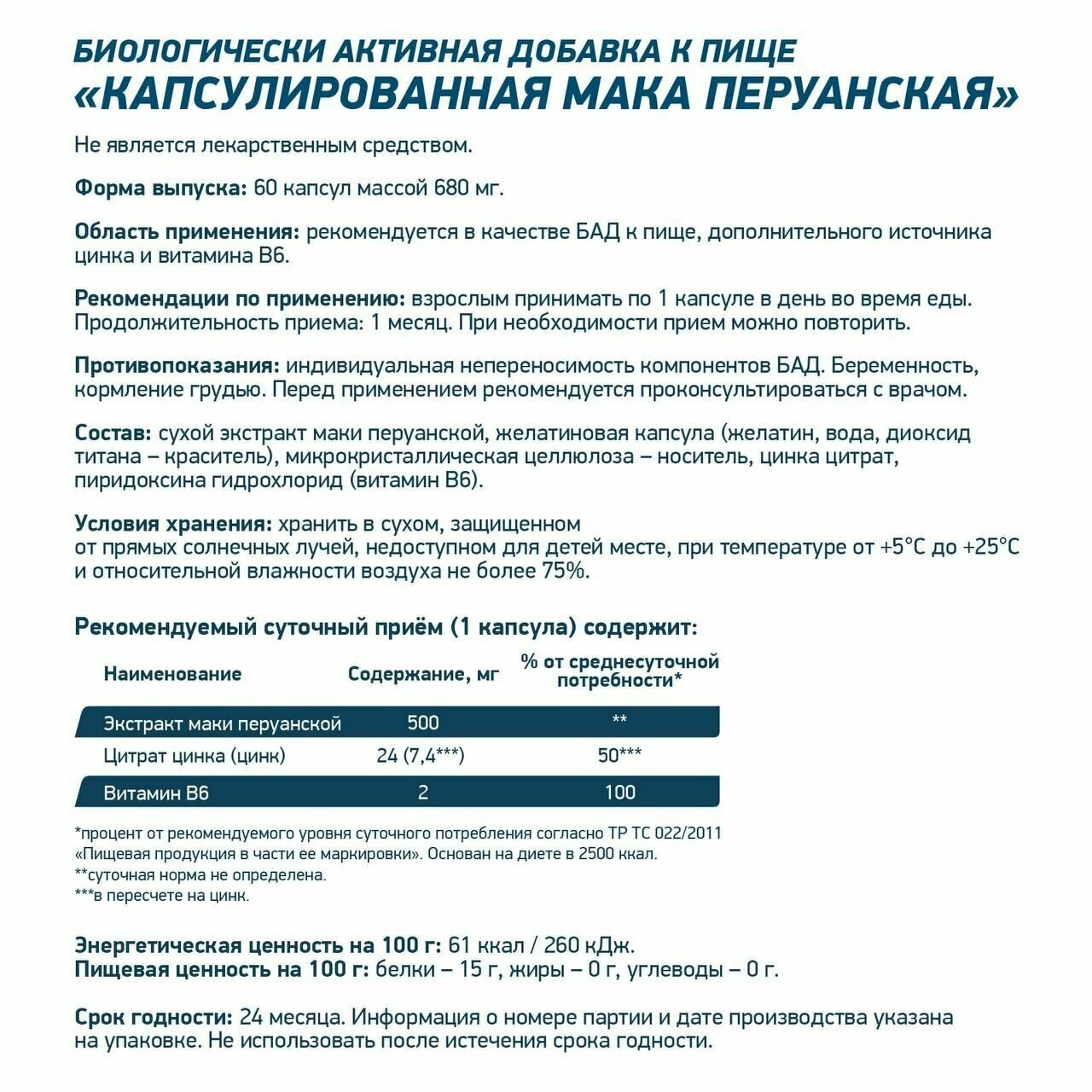 Капсулы MACA 60 cap