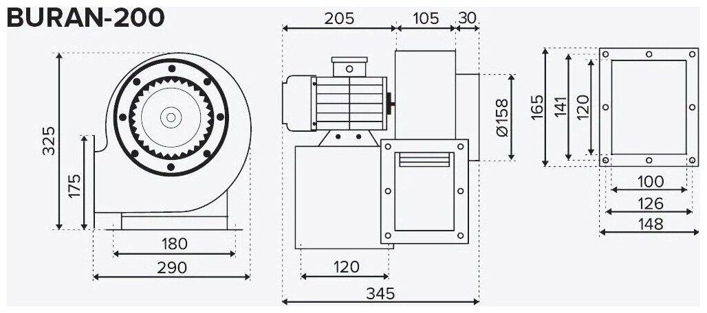 Вентилятор радиальный ERA BURAN 200 2K M L dØ145 левосторонний, двухполюсный двигатель.