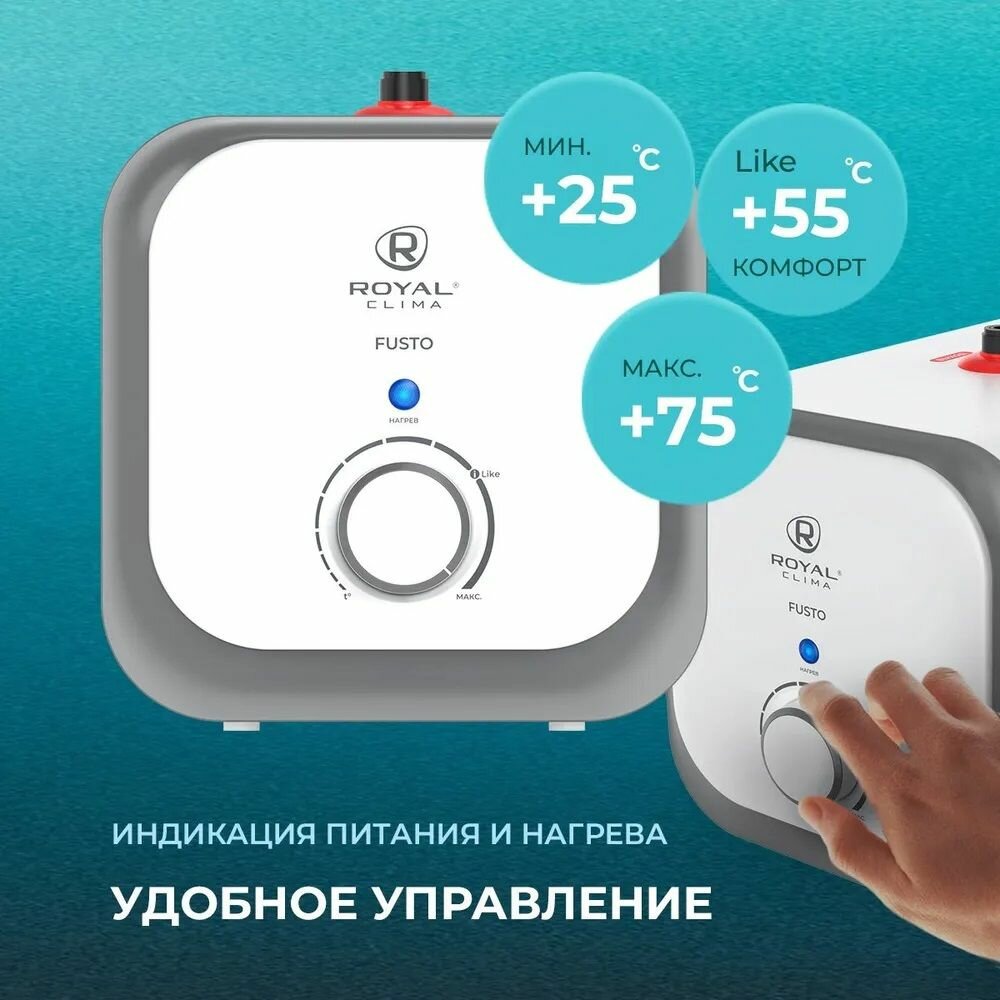 СохранитьЭлектрический водонагреватель / Накопительный / FUSTO, ROYAL Clima, белый интересное: