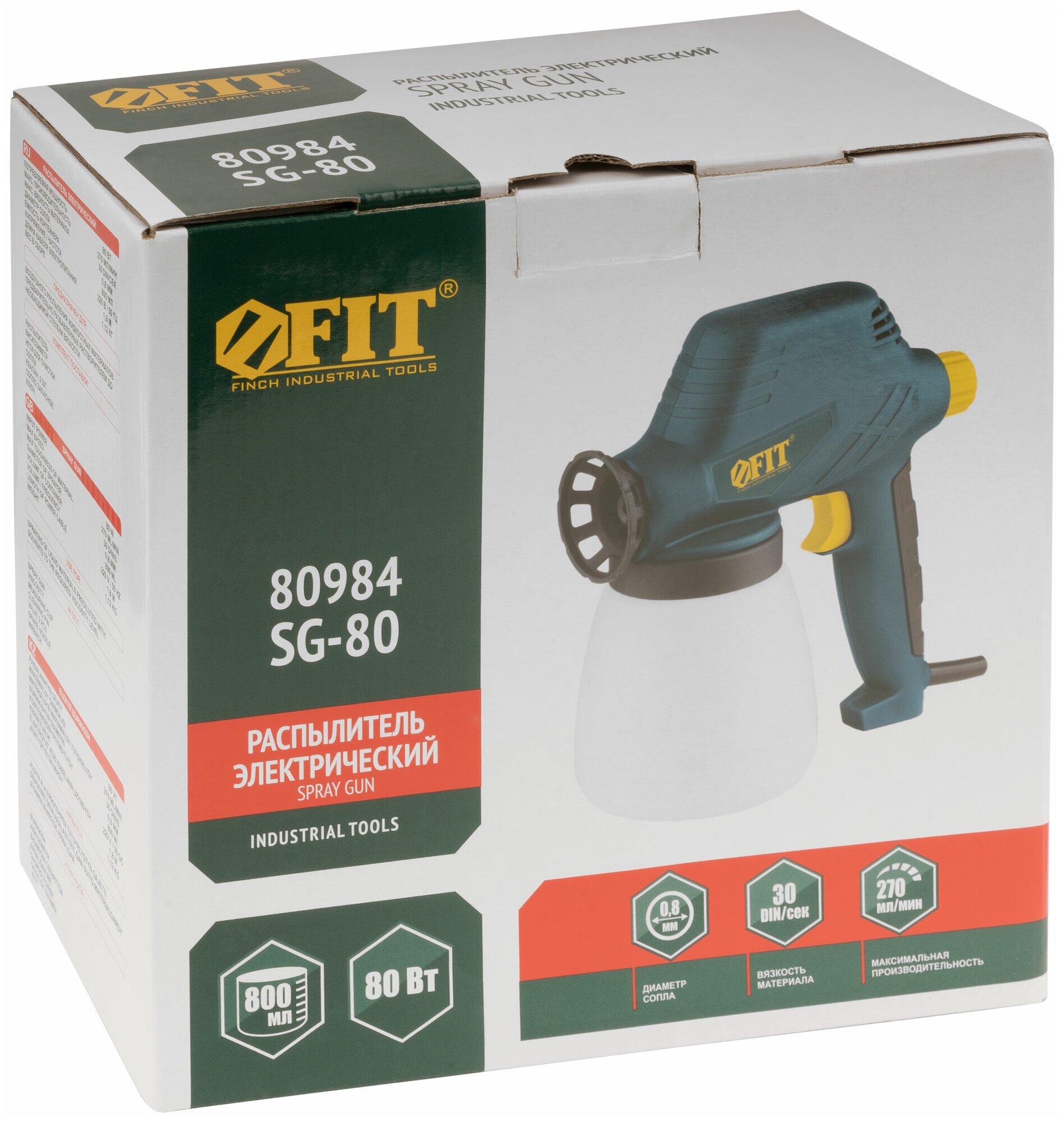 Распылитель электрический 80 Вт; 0,8 мм; 800 мл; 30 din/сек; 270 мл/мин; Б/В; коробка FIT 80984
