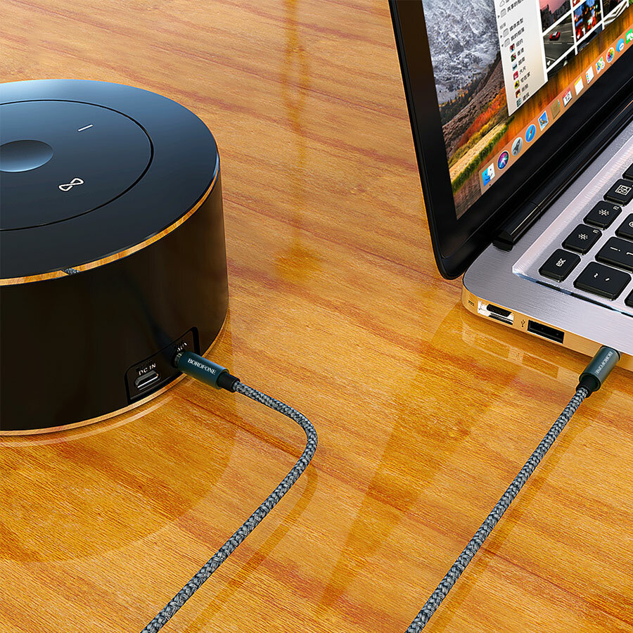 Аудио кабель AUX Borofone BL3 Audiolink 3.5мм jack на 3.5mm jack, 1м, цвет серый