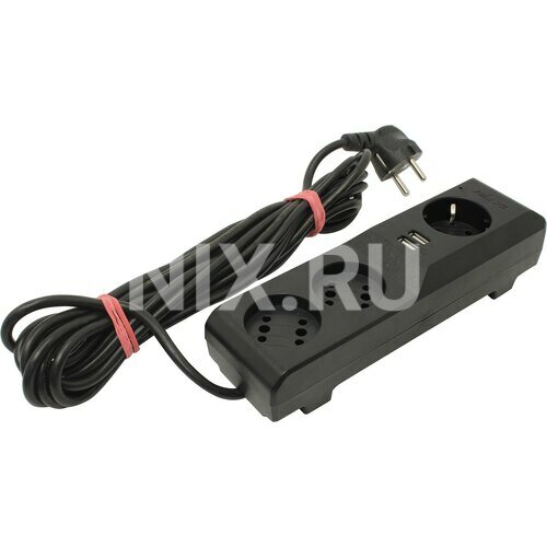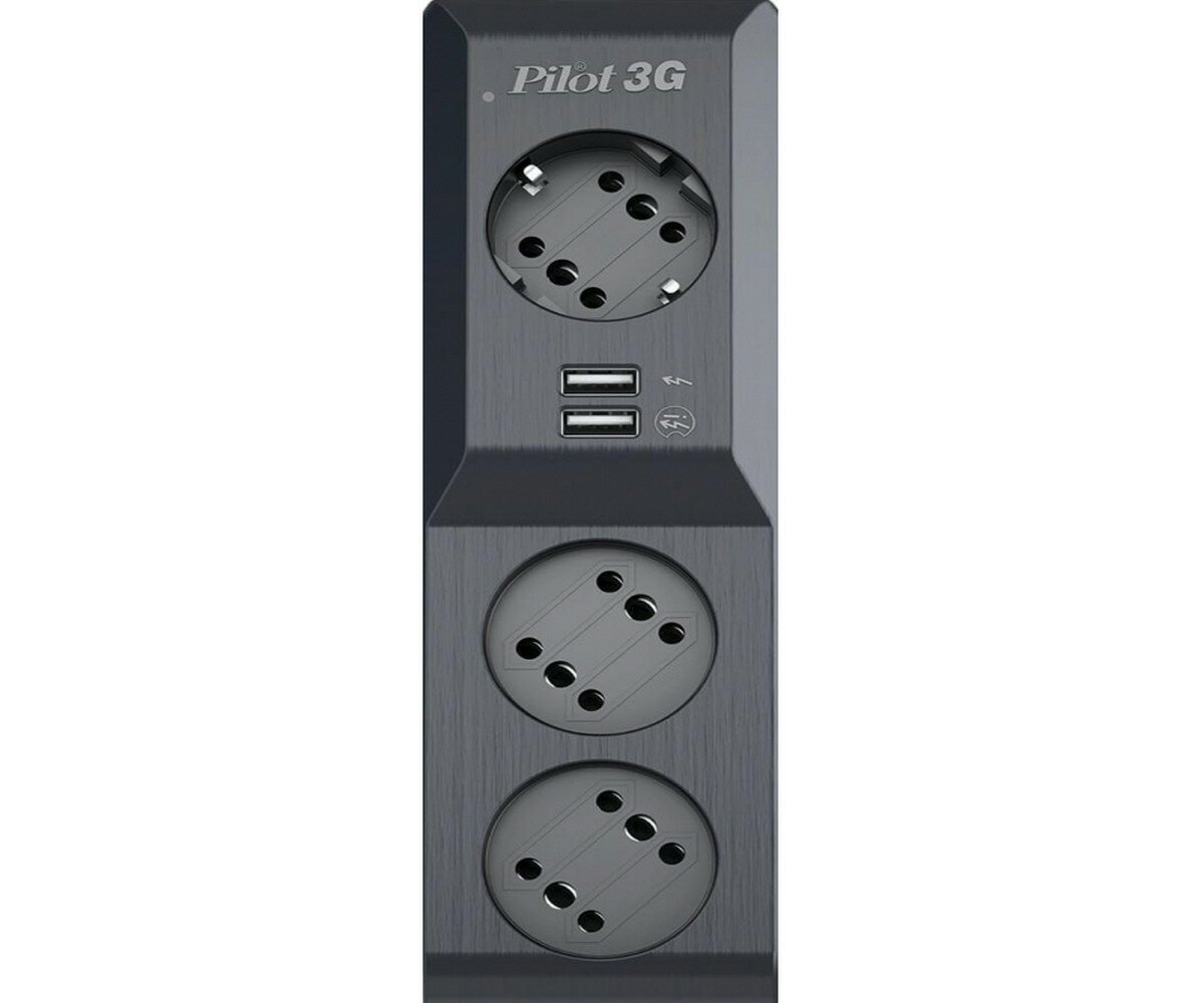 Сетевой фильтр Pilot 3G 5 метров, черный, 3 розетки, 2 USB