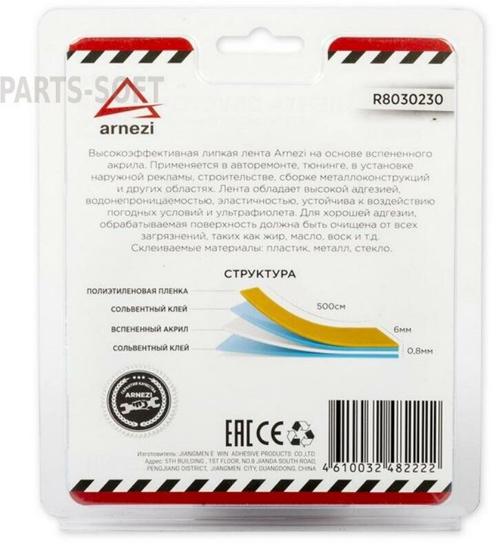 Купить Лента Липкая Двусторонняя 0.8мм X 6мм Х 5м Акриловый. В Блистере Arnezi R8030230 ARNEZI арт. R8030230