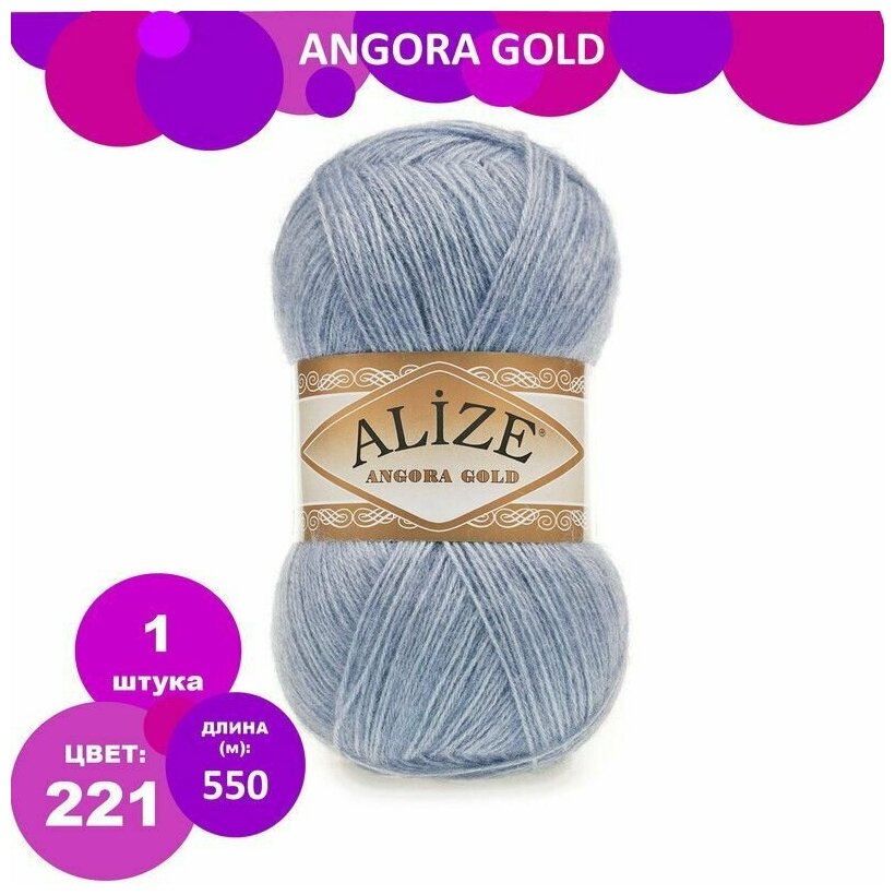 Купить Пряжа Alize Angora Gold светлый джинс (221), 80%акрил/20%шерсть, 550м, 100г, 1шт