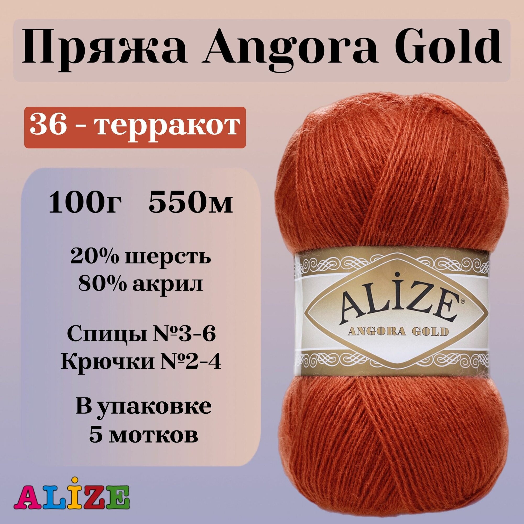 Купить Пряжа Alize Angora Gold терракот (36), 80%акрил/20%шерсть, 550м, 100г, 1шт