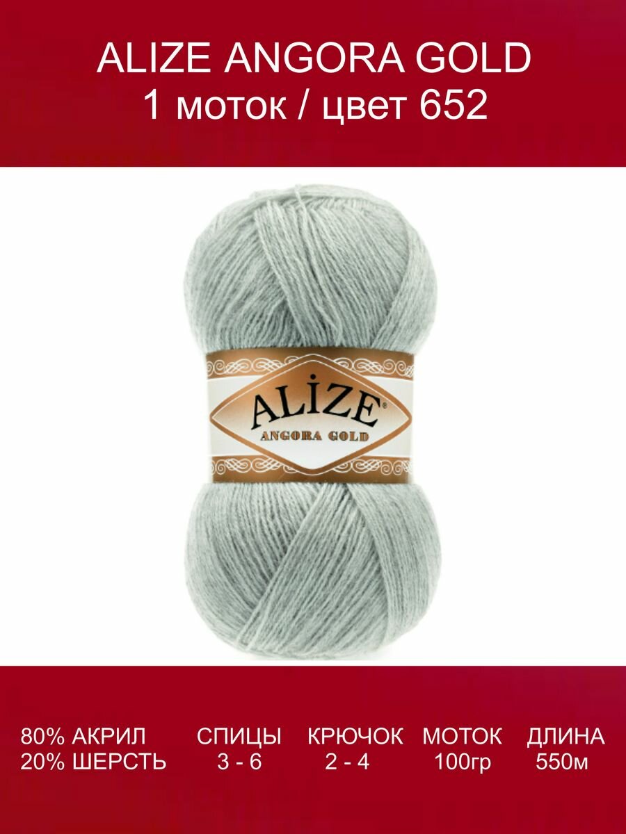 Купить Пряжа Alize Angora Gold пепельный (652), 80%акрил/20%шерсть, 550м, 100г, 1шт