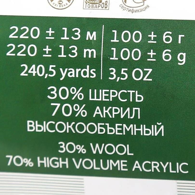 Пряжа Пехорский текстиль "Народная" 30% шерсть, 70% акрил объемный 220 м /100 гр - 1 шт