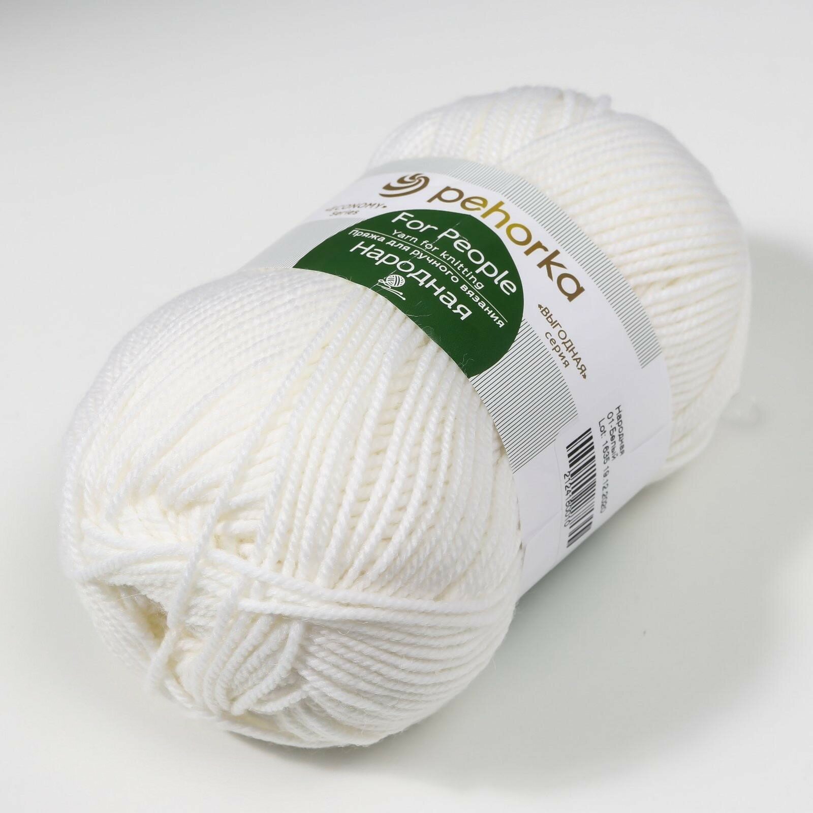 Пряжа Пехорка народная 01 белый (5 мотков)