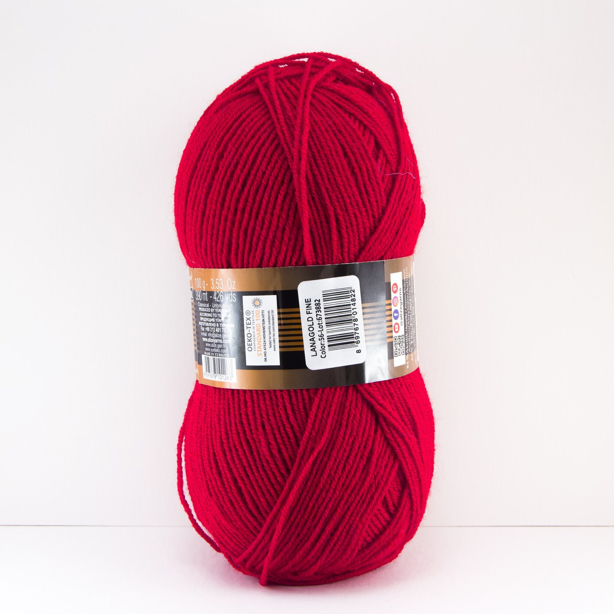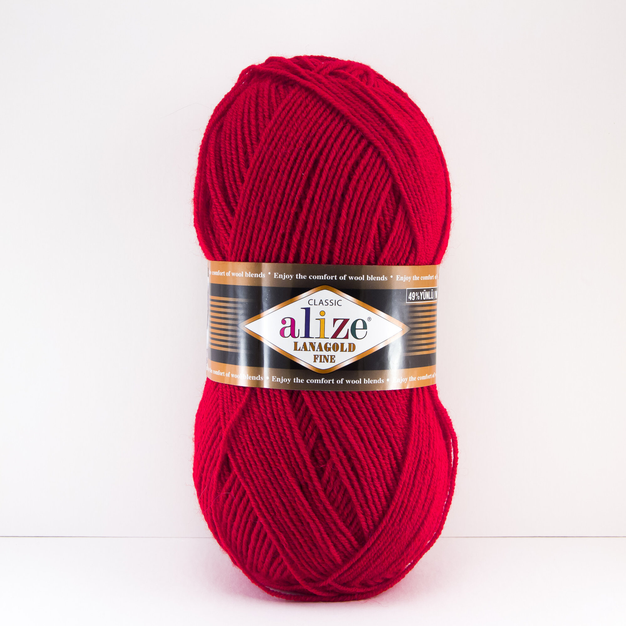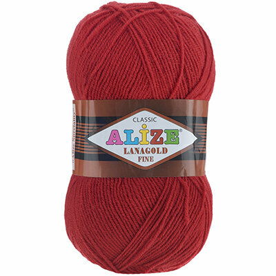 Пряжа ALIZE LANAGOLD FINE, красный - 56, 49% шерсть, 51% акрил, 5 мотков, 100 г, 390 м.