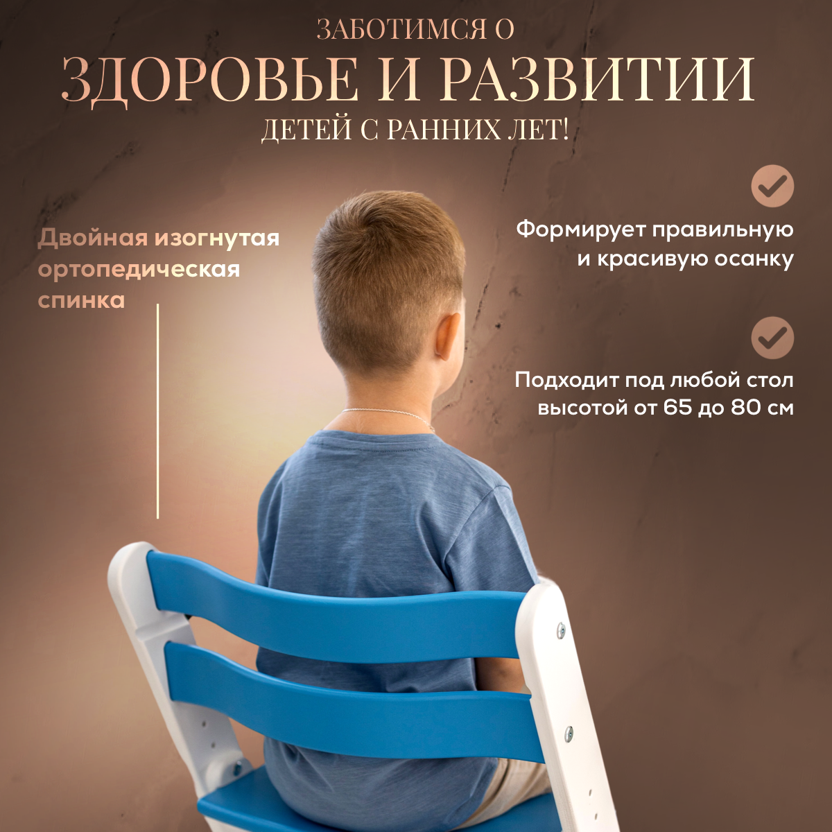 Растущий стул для детей, детский деревянный стульчик для школьника Конек Горбунек Комфорт, цвет Синий