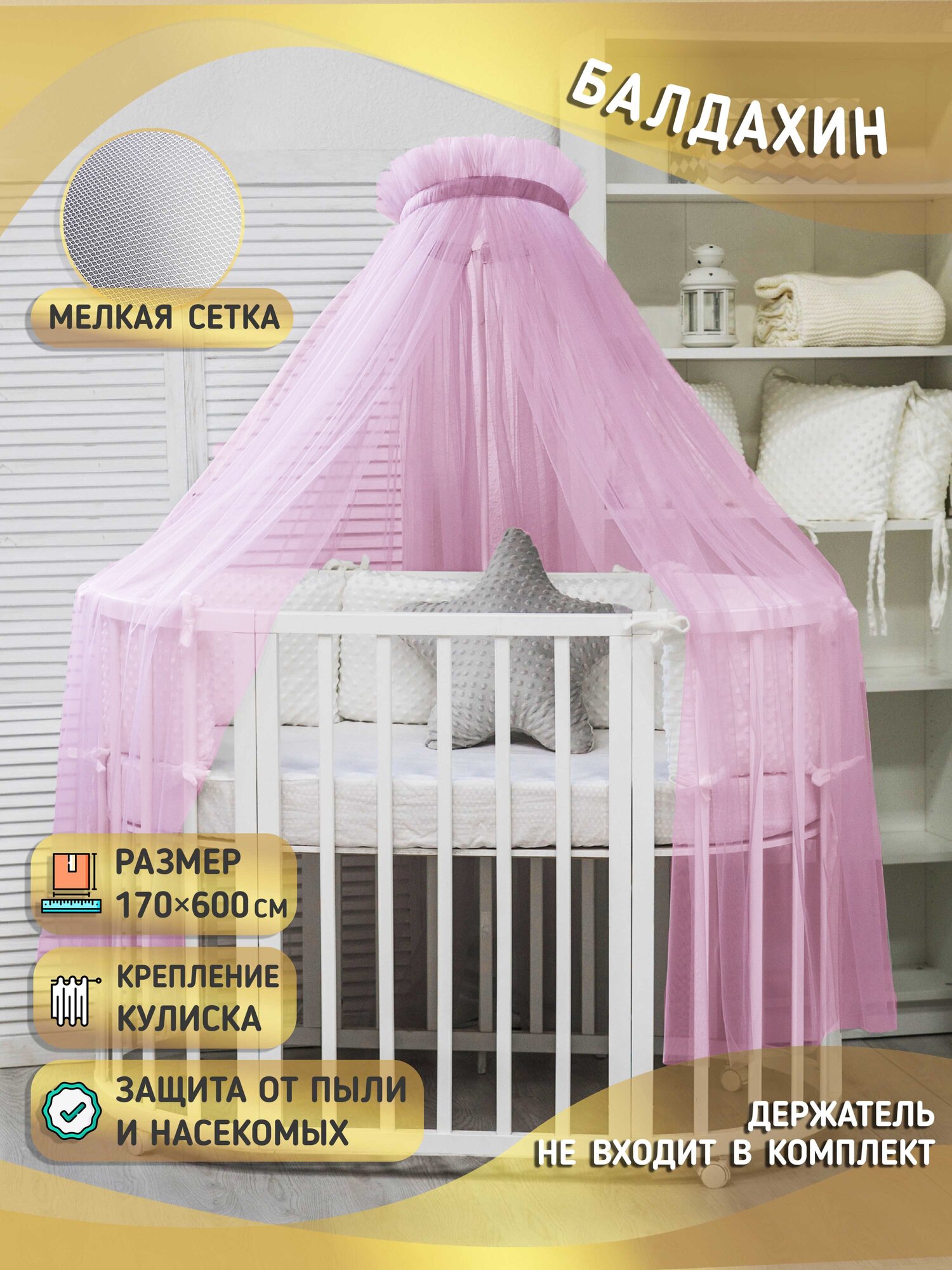 Балдахин для детской кроватки розовый