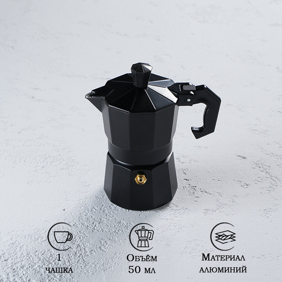 Купить Кофеварка гейзерная Доляна Alum black, на 1 чашку, 50 мл