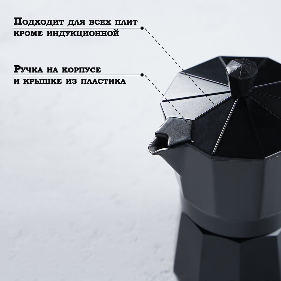 Кофеварка гейзерная Доляна Alum black, на 6 чашек, 300 мл, цвет чёрный